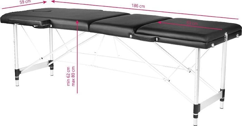 Activeshop СТІЛ МАСАЖНИЙ СКЛАДНИЙ АЛЮМІНІЄВИЙ КОМФОРТ ACTIV FIZJO 3-СЕГМЕНТНИЙ ЧОРНИЙ