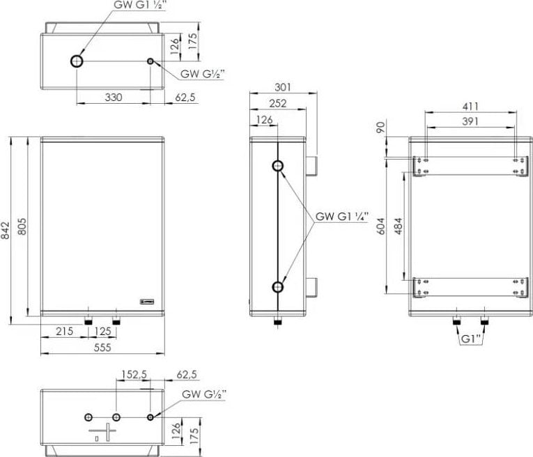 Буферна ємність AFRISO ABT 50 6805000 AFRISO Застосування: Використовується в системах опалення та охолодження.Встановлюється між джерелом(ами) і приймальною установкою.Це дозволяє підключити один або два джерела тепла/охолодження.Акумулює тепло/холод, збільшує потужність і стабілізує роботу установки.Обмежує частоту запуску джерела тепла/охолодження.В установці з тепловим насосом він гарантує належний мінімальний потік через теплообмінник, а у випадку повітряних теплових насосів забезпечує належний рівень води для їх розморожування.Опис: Призначений для прямого підключення колектора КСВ 125 або насосної групи PrimoTherm.Монтажні з’єднання можуть бути спрямовані вгору, вниз або вбік.Спеціальні з’єднання для підключення двох джерел тепла та електричного нагрівача.Призначений для настінного монтажу, економить місце в котельні.Клас енергоспоживання C. Елементи: Автоматичний повітровідвідник з донним клапаном.Два латунних напівштуцера для підключення до колектора КСВ 125 або насосної групи PrimoTherm.Три латунні заглушки, що закривають з’єднання джерела тепла та електричного нагрівача.Латунна заглушка G1/2″. Кронштейни для настінного монтажу. Тип виробу: БУФЕРНА ЄМНІСТЬ З’єднання на стороні встановлення: 2x G1″, 2x напівфітинги G1½” в комплекті Підключення до електричного нагрівача: Rp 1 1/2″ Підключення до джерела тепла 2: 2x Rp 1 1/4″ Підключення до джерела тепла 1: 2x Rp 1 1/4″ Максимальна температура середовища: 90°C Максимальний тиск: 3 бар Ємність буфера: 50 л Код виробника: 6805000 Версія: підвісна Тип теплообмінника: ємнісний Переклад: ром