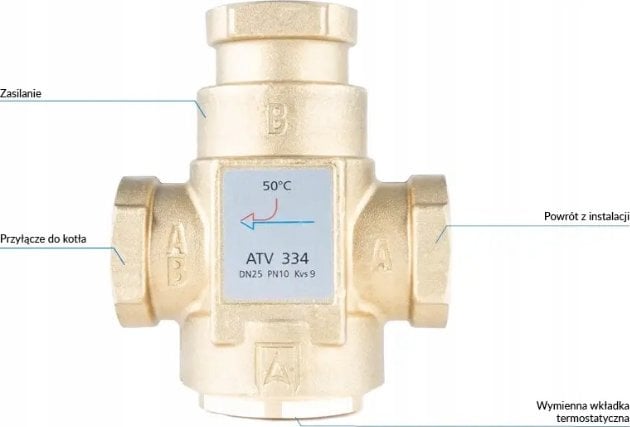 Температурний клапан ATV 334 DN25 1″ 50°C AFRISO – ідеальне рішення для опалювальних установок. Температурний клапан ATV 334 DN25 1″ 50°C від бренду Afriso є надійним рішенням для систем опалення, яке забезпечує чудовий контроль температури в установках.Його конструкція робить його ідеальним вибором для взаємодії з пелетними котлами та буферами тепла, що робить його ключовим елементом сучасних систем опалення.Застосування в системах опалення з пелетними котлами. Температурний клапан був розроблений для опалювальних установок, в яких підтримка відповідної температури є критичною.Завдяки використанню ATV 334 користувачі можуть насолоджуватися ефективною роботою пелетних котлів, що виливається в економію та тепловий комфорт у приміщеннях.Змішування потоків нагрівальної рідини для оптимальної ефективності Цей клапан працює за принципом змішування потоків нагрівальної рідини, що дозволяє отримати оптимальні пропорції в системі.Завдяки цьому система опалення функціонує більш ефективно, що знижує експлуатаційні витрати та підвищує комфорт використання.Захист котла від корозії та збільшення терміну його служби. Одним з найважливіших завдань термоклапана ATV 334 є захист котла від корозії, яка може виникнути в результаті низьких температур.Завдяки цьому користувачі можуть розраховувати на більш тривалий термін експлуатації приладу та його кращу ефективність, що вкрай важливо в контексті тривалої експлуатації опалювальної системи.Високоякісна латунь виготовлення Корпус клапана виготовлений з високоякісної латуні, що забезпечує не тільки довговічність, але і стійкість до механічних пошкоджень.Цей вид матеріалу гарантує довговічність і надійність в будь-яких умовах.Змінний термостатичний елемент, налаштований на 50°C Температурний клапан ATV 334 оснащений змінним термостатичним елементом, який налаштований на заводі на фіксовану температуру 50°C.Завдяки цьому користувачі можуть бути впевнені, що їх система опалення працюватиме в оптимальних умовах, що забезпечує тепловий комфорт у приміщеннях.Технічні характеристики температурного клапана ATV 334 – основні параметри та властивості Виробник: Afriso Діаметр з’єднання: DN25 (1″) Kvs: 9 м³/год Номінальна температура: 50°C Максимальний робочий тиск: 10 бар Найвища температура середовища: 100°C Вага продукту з упаковкою: 0,300 кг Код виробника: 1633410 EAN (GTIN): 5902510008314 Сертифікати відповідності: CE Додаткові характеристики: дозволено для контакту з питною водою Замовляйте зараз, щоб насолоджуватися найкращою продуктивністю вашої системи опалення. Ідеальний вибір для ваших потреб – доступний сьогодні в Абрикос!