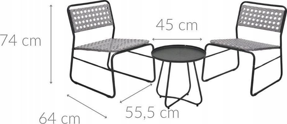 Комплект садових металевих меблів RATTAN Ambiance – Елегантність у вашому саду Комплект садових меблів Ambiance – це чудове поєднання сучасності та функціональності.Цей набір, що складається з двох ергономічних крісел і стильного столика, додасть елегантності будь-якому відкритому простору.Ідеально підходить для відпочинку та зустрічей на природі, ці меблі швидко стануть вашим улюбленим місцем для відпочинку у вашому саду.Стильний набір садових меблів – Ідеально підходить для відпочинку на природі. Виготовлений з металу та поліротангу в елегантному сірому відтінку, комплект меблів Ambiance ідеально вписується в сучасні тенденції промислового стилю.Завдяки сучасному зовнішньому вигляду ці меблі чудово доповнять будь-який сад, створюючи затишну атмосферу для проведення часу на природі.Міцна сталева конструкція – Стійкість до погодних умов. Домінуючим матеріалом у наборі є метал, який забезпечує не тільки довговічність, але й стабільність.Сталевий каркас з порошковим покриттям підвищує стійкість до несприятливих погодних умов, що гарантує тривалу експлуатацію меблів протягом багатьох сезонів.Елегантний поліратан сірого відтінку – Шарм і затишок у відкритому просторі. Поліротан в елегантному сірому кольорі додає шарму та стилю, і водночас забезпечує комфорт використання.Завдяки цьому комплект садових меблів Ambiance не тільки виглядає привабливо, але й приємний у щоденному використанні.Ергономічні крісла та стіл – Комфортне рішення для двох. Крісла довжиною 55,5 см, шириною 64 см і висотою 74 см, а також стіл із діаметром верхньої частини 45 см і висотою 45 см створюють ідеальне місце для відпочинку двох осіб.Ергономічна форма сидінь забезпечує комфорт під час тривалого перебування на вулиці.Естетична упаковка – ідеальна для подарунка та безпечного транспортування. Весь набір упакований в естетичну упаковку, яка не тільки захищає меблі під час транспортування, але й виглядає елегантно у відкритому вигляді.Це ідеальний вибір на подарунок коханій людині, яка цінує стиль і комфорт у саду.Технічні характеристики комплекту садових меблів Ambiance Виробник: Ambiance Dominant Матеріал: метал Колір: сірий Кількість елементів у наборі: 3 Комплектація: 2 стільці, стіл Кількість осіб: 2 Довжина (см): 55,5 Ширина (см): 64 Висота (см): 74 Діаметр стільниці (см): 45 Висота столу (см): 45 Товщина труби (мм): 1,2 Стиль: промисловий, modern Код виробника: VN3000150 EAN (GTIN): 8720573855075 Замовляйте зараз, щоб насолодитися найкращими моментами у своєму саду!