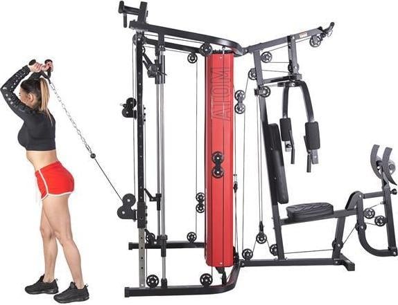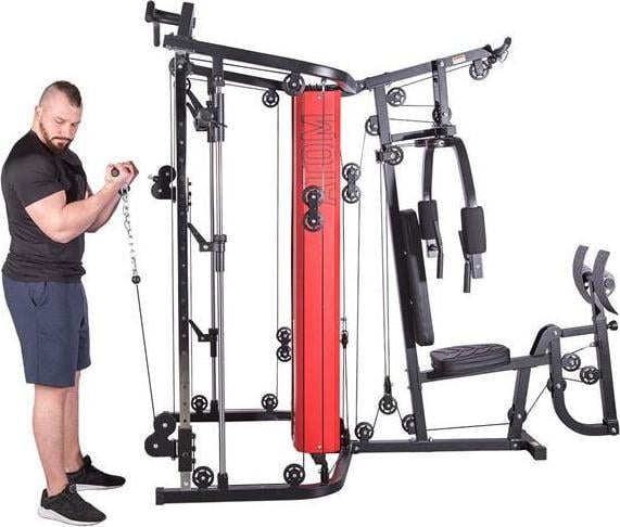 Навчальний атласний кран HMS Atom (17-51-004) Пристрій ATOM від HMS є комбінацією атласу та крана Сміта.Ця комбінація надає величезні можливості для вправ і дозволяє проводити комплексне тренування всього тіла.Найякісніший матеріал. Atom — надійний пристрій, який добре працюватиме в будь-якому домашньому тренажерному залі.Точно виготовлені профілі з міцної сталі гарантують стабільність і безпеку під час тренувань.Міцна структура, вишукана в кожній деталі, дозволяє двом людям тренуватися одночасно.Комплексне навчання ATOM надає користувачеві кран Сміта, два підйомники з регульованою висотою, рукоятку для пресу, яка легко трансформується в метелика, місце для жиму ногами та штангу для підтягувань.Усі компоненти дозволяють виконувати вправи для кожної групи м’язів, що робить ATOMA справді комплексним пристроєм.До виробу додається додаткове обладнання у вигляді ручок для блоків, що зробить тренування більш ефективним.Комфорт і зручність ATOM – це міцність в поєднанні зі зручністю і комфортом під час тренувань.Ергономічна спинка і сидіння дозволять прийняти зручне положення під час занять.Регулювання висоти опори в зоні жиму ногами полегшить налаштування пристрою під уподобання тренуючого.До штанги крана кріпиться спеціальна губка, яка захищає тренажер, напр. при виконанні присідань.Протиковзкі матеріали на ручках штанги та натискному кронштейні гарантують міцне захоплення та безпеку.ATOM HMS — пристрій, який виправдає очікування кожного користувача та доповнить будь-який домашній тренажерний зал.Специфікація: Розміри виробу: Довжина: 231 см Ширина: 139,5 см, з горловиною 213 см Висота: 217 см Спинка: 67,5 х 31 х 6,5 см Сидіння: 37 х 32 х 6,5 см Відстань між ручками натискних рук: 69;54 см Підставка для однієї ноги на станції для жиму ногами: 30 х 14,5 см Регулювання висоти стійки на станції для жиму ногами: 3 рівні, кожні 3 см. Гриф: довжина: 213 см діаметр: 32 мм вага: 10,5 кг Штанга: 115,5 см, диам.33 мм Регулювання висоти підйому: 20 рівнів Регулювання натягу кабелю Страховка: 15 градусів Стос: 62,5 кг Максимальна вага користувача: 120 кг Вага виробу: 217,5 кг Тренажерне обладнання: кран Smith Два шківи з регульованою висотою Планка для підтягування метелик / Станція для пресування ногами Примітки: Не призначено для комерційного використання 24-годинна гарантія місяці
