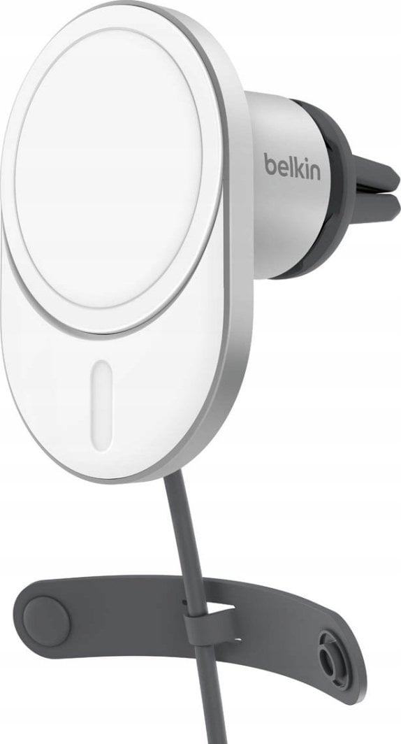 Belkin BoostCharge Pro Magnetic Wireless Car Charger Qi2 15W – зарядка в дорозі Автомобільний тримач Belkin BoostCharge Pro Magnetic Wireless Car Charger Qi2 15W – ідеальне рішення для тих, хто цінує зручність і сучасні технології.Завдяки потужності зарядки до 15 Вт ви можете заряджати свій пристрій під час водіння, що робить його ідеальним вибором для користувачів серій iPhone 12, 13, 14, 15 і 16. Сумісність із пристроями MagSafe та Apple Цей тримач повністю сумісний з офіційними чохлами MagSafe товщиною до 3 мм, що забезпечує зручність використання та безпеку під час водіння.Ви можете бути впевнені, що ваш пристрій буде міцно триматися на місці навіть на нерівній поверхні.Вбудований індуктивний зарядний пристрій Qi2 15W Belkin Boost↑Charge Pro використовує сучасну технологію Qi2, яка дозволяє бездротово заряджати ваш iPhone.Це інноваційне рішення позбавляє від необхідності використовувати кабелі, що значно підвищує комфорт використання в автомобілі.Вільне обертання та легке регулювання кута Рукоятка оснащена рухомою головкою, яка дозволяє легко регулювати кут огляду та змінювати орієнтацію між портретним та ландшафтним режимами.Завдяки цьому ви можете адаптувати його під свої потреби, що підвищує комфорт використання навігації або здійснення телефонних дзвінків.Компактний розмір і легка установка Тримач характеризується компактними розмірами і виготовлений з міцного пластику, що дозволяє легко зберігати його в автомобілі.Встановлення на вентиляційний отвір швидке та просте, що робить його універсальним рішенням для кожного водія.Технічні характеристики: Код виробника: WIC008btGR-NCV2 Бренд: Belkin Тип: для вентиляційного отвору Колір: сірий EAN (GTIN): 0745883885992 Потужність зарядки: макс. 15 Вт Тип зарядного пристрою: бездротовий Qi2 Довжина кабелю: 1,2 м Матеріал: пластик Сумісність: з офіційними футлярами MagSafe до 3 мм Система кріплення: MagSafe Тип кріплення: вентиляційний отвір Необхідний зарядний пристрій: USB-C PD з мін.20 Вт