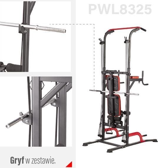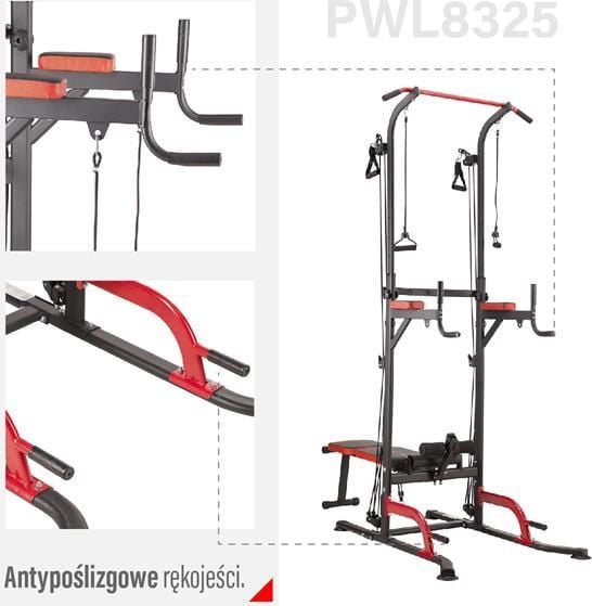 PWL8325 HMS – багатофункціональний поручень з лавкою.Це дозволить вам якісно тренувати всі групи м’язів.Тверді матеріали Поручень виготовлено з матеріалів найвищої якості, що безпосередньо означає його стабільність і довговічність.Всі спинки оббиті сучасною, протиковзкою, вологостійкою оббивкою.Поєднання відмінної оббивки з м’якою товстою губкою забезпечує високий комфорт під час тренувань.На ручках використовується піна, що забезпечує міцний хват і забезпечує безпеку.Величезні можливості для вправ PWL8325 HMS дозволяють виконувати вправи для всіх груп м’язів верхньої частини тіла.Конструкція виробу дозволяє виконувати велику кількість вправ.У розпорядженні користувача штанга для підтягувань і поручні для так званих провалів, лава, опори для віджимань і гаки, на які можна розмістити штангу.Як би цього було недостатньо, перила оснащені блоками з опорними стрічками, що ідеально розширює діапазон вправ, які можна виконувати.Всі елементи дозволять виконати повноцінне інтенсивне тренування грудей, спини, плечей, біцепсів, трицепсів і преса.Багато варіантів регулювання для PWL8325 HM S, що дозволяє кожному налаштувати його відповідно до своїх уподобань і конкретної вправи.Висота штанги регулюється, а лаву можна розташувати двома способами.Маємо положення нахилу вниз для тренування м’язів преса і горизонтальне положення.Штанга в комплекті До поруччя додано сталеву штангу, яку можна використовувати різними способами в поєднанні з лавкою або як окрему частину обладнання.Він також дозволяє виконувати вправи для ніг, що дає можливість тренувати все тіло на поручні PWL8325 HMS.PWL8325 HMS – продукт, який обов’язково повинен бути в кожному домашньому тренажерному залі.Частини м’язів, які можна тренувати: – груди – м’язи спини – м’язи плечей – біцепс – трицепс – живіт – ноги Специфікація: Матеріал: сталь, EVA, PP, дерево Розміри: Довжина: 181 см, зі складеною лавою 132 см Ширина: 87 см Висота: 232 см Розміри штанги: Ширина: 95 см Діаметр ручки: 30 мм Довжина ручок: 11 см Відстань між ручками: 76 см Розміри поручнів: Повна довжина поручнів: 57 см Відстань між ручками: 60 см Відстань між підлокітниками: 49 см (внутрішній край) Розміри підлокітників: 20 x 10 x 4 см Діаметр ручки: 30 мм Довжина ручки: 11 см Розміри лавки: Загальна довжина: 105 см Довжина спинки: 40 см Ширина спинки: 30 см. Товщина спинки: 4 см. Довжина сидіння: 30 см. Ширина сидіння: 28 см. Товщина сидіння: 4 см. Висота лави: 41 см. Опори для віджимань: Відстань між ручками: 60 см. Діаметр ручок: 30 мм. навантаження: 150 кг Вага виробу: 32 кг