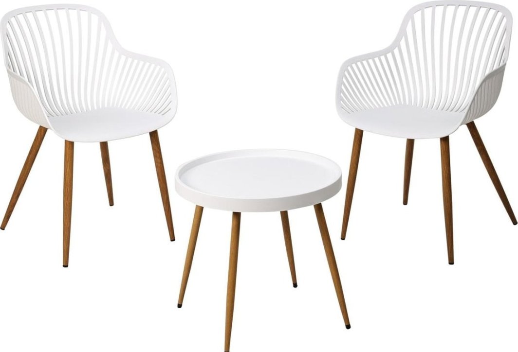 БАЛКОНСЬКИЙ КОМПЛЕКТ МЕБЛІВ, СТІЛ І 2 БІЛИХ СТІЛЬЦЯ