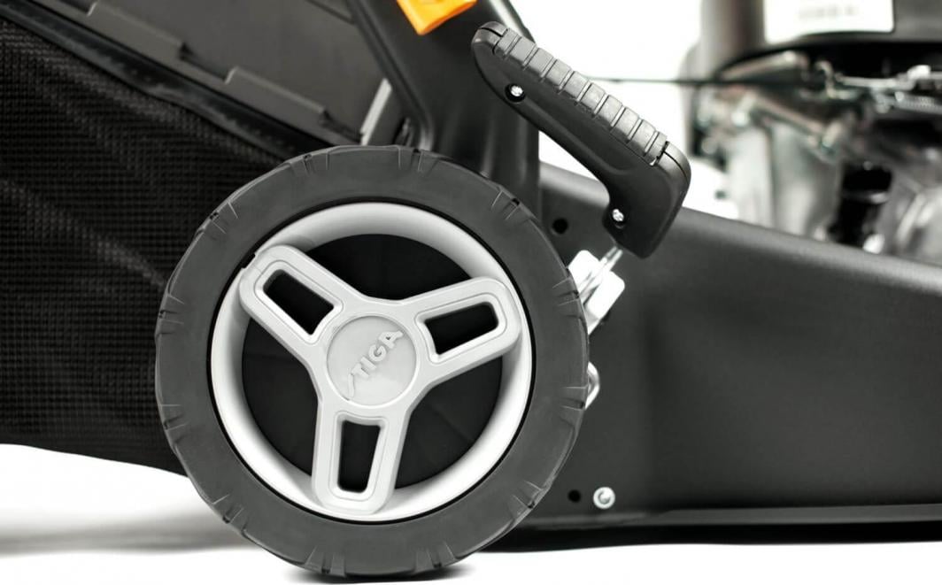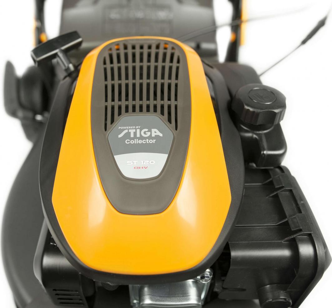 STIGA Collector 548 S STIGA Collector 548 S з шириною зрізу 46 см. Косарка оснащена надійним бензиновим двигуном об’ємом 123 см3 з номінальною потужністю 1,90 кВт при 2900 об/хв.Корпус виготовлений зі сталі, а центральну систему регулювання висоти зрізу можна легко встановити за допомогою важеля в одне з шести положень у діапазоні від 22 мм до 65 мм.Косарка Collector 548 S призначена для легкого збирання скошеної трави і оснащена 60-літровим кошиком з індикатором заповнення.Регульоване і складне кермо забезпечує повний комфорт під час використання.