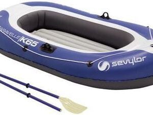 Bestway Caspian Dmuchany ponton z wiosłami 2,3 m oraz ręczną pompką, 65046 Długość pontonu 65046 marki Bestway wynosi 230 cm i może on służyć jako łódka. Łatwy w montażu i idealny na płytkie wody. Wykonanie z wysokiej jakości materiału i konstrukcja z dwoma komorami powietrza sprawia, że ponton jest wytrzymały i łatwy w użytkowaniu. Podłoga pontonu ze sklejki jest bardzo mocna a dodatkowy pas poszycia chroni przed uszkodzeniami. Wiosła są wykonane w ergonomiczny sposób, można je również złożyć, co ułatwia ich przenoszenie i przechowywanie. Ponton może zostać szybko napompowany jak również powietrze może zostać z niego bardzo szybko spuszczone. Ponton pomieści 2 osoby dorosłe o maksymalnej łącznej wadze 258 kg. Specyfikacje Wymiary: 230 x 130 x 33 cm (dł. x szer. x wys.) Długość wioseł: 145 cm Maksymalne obciążenie: 258 kg Wielkość: dla 2 osób dorosłych Wydajność pompy: 2,8 l Zawartość przesyłki : 1 x łódka 2 x wiosło 1 x pompka ręczna Numer produktu Bestway: 65046 EAN: 8718475912057