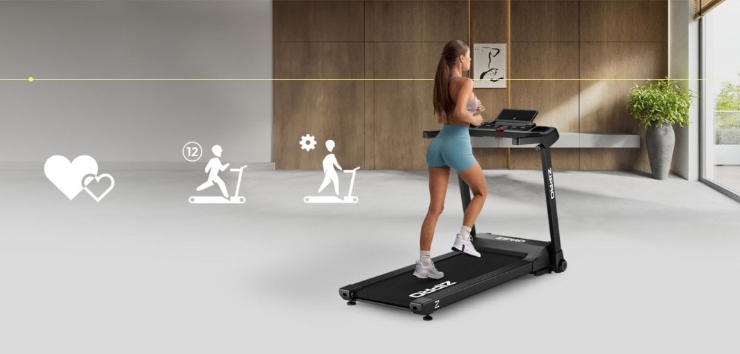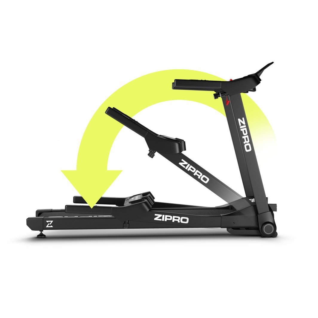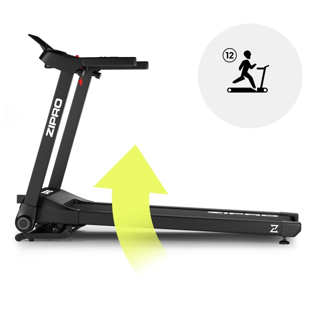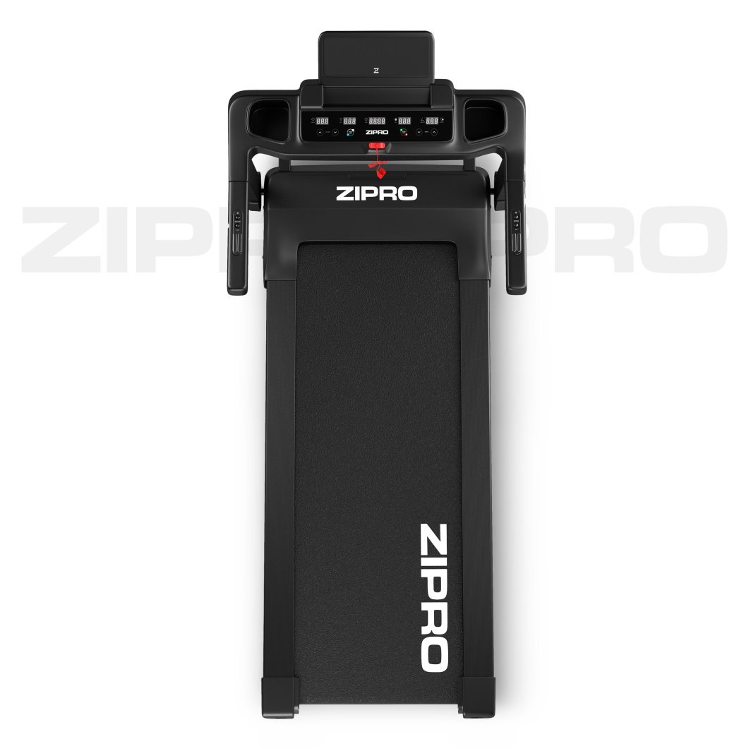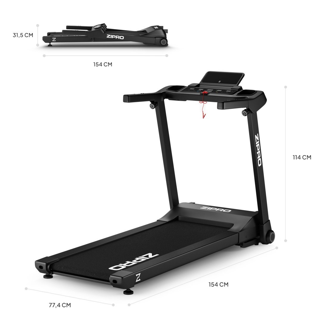 ZIPRO Ramble bieżnia elektryczna – dlaczego warto? Ćwiczenie na bieżni daje wiele korzyści. Przede wszystkim to znakomity trening cardio, który wzmocni Twoją kondycję, wytrzymałość, przyczyni się do zgubienia nadprogramowych kilogramów, a także wspomoże rozrost mięśni. Warto jednak wybrać dobrą maszynę do tego typu ćwiczeń. Bieżnia elektryczna ZIPRO Ramble to strzał w dziesiątkę. Dzięki wielu funkcjom, znakomitej budowie i dopasowaniu do domowej siłowni z pewnością będziesz cieszyć się z tego sprzętu przez długie lata, nie zakłócając przy okazji spokoju sąsiadów. Doskonały wybór do domowego treningu Zapewnij sobie pełen komfort treningów dzięki szerokiej taśmie do biegania, stabilności, którą gwarantuje maszyna oraz jej wysokiej nośności. Zapomnij o przeciążonych stawach i innych urazach, o które nietrudno podczas ćwiczeń na urządzeniach niskiej jakości. Treningi na ZIPRO Ramble to postawienie na stabilność i pełne bezpieczeństwo! 125×45 cm Duża powierzchnia do biegania Wiele osób ceni sobie możliwość komfortowego biegu na bieżni. W ZIPRO Ramble zapewnia to taśma o wymiarach 45 × 125 cm. W porównaniu do innych modeli to naprawdę dużo! Dzięki długiej i szerokiej taśmie możesz swobodnie trenować, niezależnie od Twojej techniki oraz warunków fizycznych. Znakomita budowa bieżni umożliwia komfortowe ćwiczenia na niej osobom w każdym wieku i o zróżnicowanych sylwetkach. 12 poziomów Regulacja kąta nachylenia pasa biegowego Funkcja Dynamic Slope pozwala na dopasowanie nachylenia taśmy biegowej. Aż 12 poziomów regulacji pozwoli Ci na stopniowe zwiększanie poziomu trudności biegu na bieżni. Dzięki dobrej regulacji tej funkcji zaangażujesz jeszcze bardziej mięśnie nóg, a tym samym przesuniesz swoje limity wytrzymałości. Takie ćwiczenia to znakomity pomysł, by przygotować się do biegów w trudnych terenach! Max 16 km/h Duża prędkość, mocny i wydajny silnik W ZIPRO Ramble zastosowano elektryczny silnik, który zapewni Ci cały wachlarz możliwości ćwiczeń. Możliwy jest dzięki niemu chód, marsz, trucht, bieg kondycyjny i sprint. W tym przypadku bieżnia może rozpędzić się aż do 16 km/h, co jako maksymalna prędkość zadowoli nawet zawodowych biegaczy! Maksymalna wytrzymałość Bieżnia elektryczna ZIPRO Ramble dopasowana jest do każdego użytkownika. Ćwiczyć mogą na niej osoby aż do 130 kilogramów bez obaw o swoje zdrowie. Wytrzymała konstrukcja maszyny dba o bezpieczeństwo i pełen komfort każdego, kto podejmie na niej trening! Wygodny panel w ZIPRO Ramble Konfigurowanie ustawień w ZIPRO Ramble jest dziecinnie proste! Pozwala na to panel znajdujący się pod komputerem maszyny do ćwiczeń. Z czytelnymi oznaczeniami bez kłopotu będziesz zarządzać prędkością, a także kątem nachylenia pasa do biegu. Opcje możesz regulować także przy pomocy przycisków znajdujących się na poręczach, obok czujników pulsu. Ułatwia to wprowadzanie zmian, bez konieczności przerywania treningu. Oczywiście możesz kontrolować swój cały trening na bieżąco. Komputer wyświetli Ci następujące informacje: czas, dystans, prędkość, liczbę spalonych kalorii, puls. Dzięki możliwości śledzenia swoich osiągów widzisz, że Twoja kondycja się poprawia! Osiągaj kolejne cele i patrz, jak Twoja sylwetka się zmienia! Dzięki możliwości monitorowania tętna osiągniesz lepsze wyniki! Śledzenie tego pomiaru pozwala określić Twoją kondycję, a co za tym idzie, ustalić najlepszy rodzaj treningu. Czujniki tętna zostały umieszczone na kierownicy. One wraz z programami HRC pozwalają na dopasowanie intensywności ćwiczeń do Twoich możliwości. ZIPRO Ramble pomoże Ci w ten sposób osiągnąć zamierzone rezultaty tak szybko, jak to możliwe, bez ryzyka kontuzji lub przeciążenia organizmu. 12 programów do wyboru sprawia, że każdy odnajdziesz odpowiedni trening Jesteś osobą początkującą? A może masz duże doświadczenie w bieganiu? ZIPRO Ramble na pewno kryje w sobie odpowiedni trening dla Ciebie! Stwórz własny program dopasowany do tego, co chcesz osiągnąć w swojej rutynie Oprócz dostępu do 12 programów treningowych kolejne możesz stworzyć samodzielnie! ZIPRO Ramble pozwala na zapisanie aż 3 samodzielnie przygotowanych programów treningowych. Dzięki temu możesz do nich zawsze wrócić, aby ćwiczyć tak, jak lubisz, stosując taką technikę biegu, jaka Ci najbardziej odpowiada. Półka na urządzenia mobilne Pełen komfort korzystania ze smartfona lub tabletu,. Świetnym pomysłem jest puszczenie z niego muzyki, podcastu, serialu lub filmu, aby podczas ćwiczeń dodatkowo skupić się na czymś innym. W towarzystwie ulubionych utworów lub treści wizualnych czas płynie o wiele szybciej, dlatego wykonywany trening skończy się w okamgnieniu! ZIPRO Ramble jako element domowej siłowni jest bardzo łatwy w przechowywaniu System składania Flat Fold umożliwia złożenie biezni na płasko. Siłowniki zapewniają bezpieczne i wygodne opuszczanie pasa. Po złożeniu, urządzenie nie zajmuje dużo miejsca, dlatego śmiało możesz regularnie ćwiczyć nawet, jeśli mieszkasz w niewielkim mieszkaniu! Problemu także nie sprawia przenoszenie maszyny z miejsca na miejsce. Zastosowano w niej kółka, które ułatwiają transport między pokojami zaraz przed i po ukończeniu treningu. Zaawansowany system amortyzacji w ZIPRO Ramble Wiele osób rozpoczynających przygodę z bieganiem obawia się obciążenia stawów. To ryzyko dotyczy zwłaszcza treningów na nierównym terenie lub niskiej jakości sprzęcie. W przypadku ZIPRO Ramble możesz liczyć na świetną amortyzację VibGuardPro, która składa się z 4 amortyzatorów oraz 4 podkładek. To połączenie dba o minimalizację obciążenia stawów, sprawiając, że bieg jest w pełni komfortowy i bezpieczny Profesjonalny trening w domowych warunkach Maksymalna waga użytkownika: 130 kg Przeznaczenie
