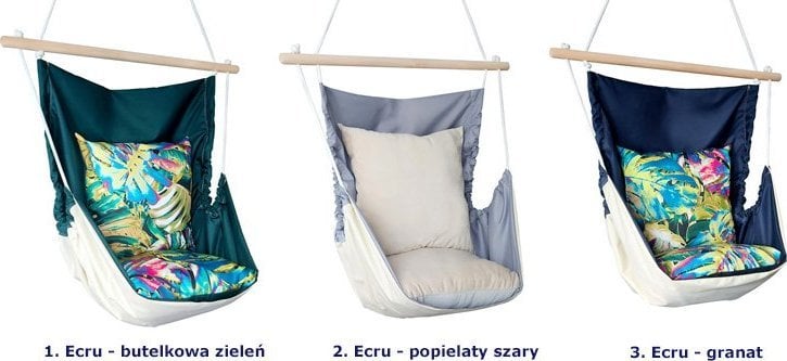 Бразильські гойдалки Elior для саду екрю – пляшковий зелений – Merko – Ідеальний відпочинок у вашому саду. Бразильські гойдалки Klavo від Elior – чудове рішення для тих, хто хоче привнести трохи релаксу в своє життя, як вдома, так і в саду.Завдяки своїй конструкції крісло забезпечує комфорт і підтримку хребта, і при цьому займає менше місця, ніж традиційний гамак.Це відмінний вибір для будь-якої пори року, що пропонує комфортний відпочинок у різних умовах.Комфорт і ергономіка – бразильське крісло Klavo для всіх. Гойдалки Klavo ідеально підходять як для дітей, так і для дорослих, з максимальним навантаженням до 120 кг.Його ергономічний дизайн дозволяє кожному користувачеві насолоджуватися хвилиною відпочинку в зручному положенні.Водонепроникна тканина Intex 7V – міцна та легко чиститься. Виготовлені з високоякісної тканини Intex 7V, гойдалки водонепроникні, вогнестійкі та стійкі до УФ-променів.Завдяки цим властивостям виріб надовго зберігає свої естетичні та функціональні властивості, а чистити надзвичайно легко.Стильний дизайн – Універсальне використання в різних композиціях. Гойдалки Klavo відрізняються елегантним зовнішнім виглядом, який чудово впишеться в різноманітні садові композиції та домашні інтер’єри.Його універсальний стиль робить його ідеальним доповненням до терас, садів і віталень.Двоколірні подушки з антиалергічним наповнювачем – Комфорт на вищому рівні. Гойдалки оснащені двоколірними подушками з антиалергічним наповнювачем, що підвищує комфорт використання.Завдяки цьому кожна мить, проведена на гойдалках, стає справжньою насолодою.Легка збірка – Прості інструкції та швидке встановлення Гойдалки Klavo легко зібрати, а це означає, що їх можна швидко встановити на стелю або міцну гілку.Це універсальне рішення, яке можна адаптувати до різних приміщень.Технічна характеристика бразильських гойдалок Elior – Розміри та матеріали, використані у виробі Виробник: Elior Тип виробу: Бразильські гойдалки Матеріал сидіння: тканина Intex 7V Розміри сидіння: 1,35 м х 1,35 м Розміри подушки сидіння: 55 см х 55 см Розміри подушки спинки: 55 см х 55 см Загальна довжина: 1,6 м Довжина мотузки: 4 м Діаметр мотузки: 12 мм Максимальне навантаження: 120 кг Колір тканини: Екрю – пляшковий зелений Колір подушки: Пляшковий зелений і квіти Додаткові характеристики: Водонепроникні, вогнестійкі, стійкі до ультрафіолетових променів тканинні елементи, які можна прати.Замовляйте зараз, щоб насолодитися найкращим відпочинком у своєму саду!