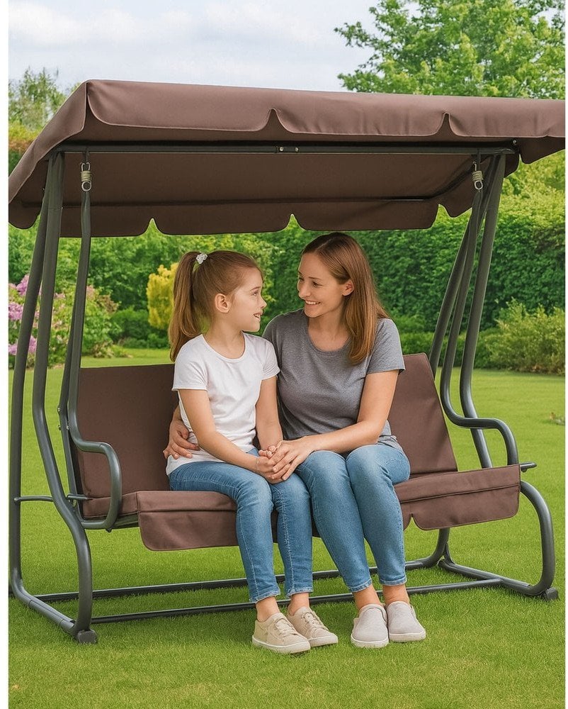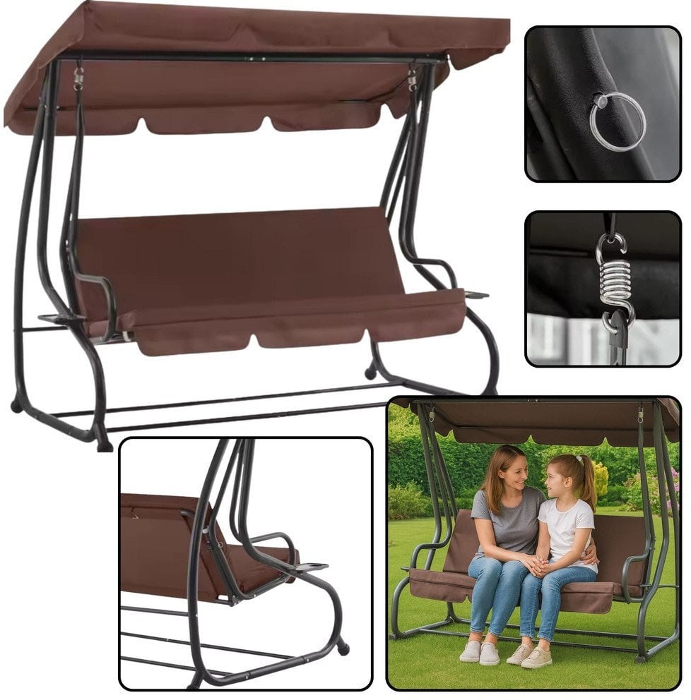 Чотиримісна садова гойдалка, навіс-гойдалка, окремо стояча коричнева – Ідеальний відпочинок у саду. Чотиримісна окремо стояча садова гойдалка коричневого кольору гойдалка з навісом від Lean – відмінне рішення для тих, хто хоче насолоджуватися моментами відпочинку на природі.Розроблений з урахуванням комфорту, він може вмістити до чотирьох осіб, що робить його ідеальним місцем для проведення часу з родиною та друзями.Функція кушетки – Зручність і комфорт відпочинку. Гойдалка оснащена функцією лежанки, що дозволяє легко трансформувати її в зручне місце для лежання.Завдяки цьому ви зможете повноцінно розслабитися і насолодитися хвилинами відпочинку в саду або на терасі.Стабільна конструкція – Висока вантажопідйомність до 280 кг. Міцна сталева конструкція гарантує не тільки довговічність, але й безпеку використання.Гойдалки мають вражаючу вантажопідйомність до 280 кг, що дозволяє використовувати їх декільком людям одночасно, не турбуючись про стійкість.Інтегрований сонцезахисний навіс – захист від сонця. Регульований сонцезахисний навіс є додатковою перевагою, яка забезпечує тінь і комфорт у сонячні дні.Завдяки цьому ви можете насолоджуватися відпочинком на природі, не турбуючись про надмірне сонячне світло.М’які подушки – зручне сидіння та естетичність У комплекті чотири м’які подушки, які не тільки підвищують комфорт сидіння, але й додають естетики всій гойдалці.Завдяки їм кожна мить, проведена на гойдалках, стає справжньою насолодою.Елегантний дизайн – підходить для будь-якого саду. Гойдалки відрізняються елегантним і сучасним дизайном, який ідеально впишеться в будь-який сад, терасу або патіо.Його коричневий колір робить його універсальним вибором, який додасть шарму будь-якому оточенню.Технічні характеристики чотиримісної гойдалки Brown Garden LEAN Виробник: Lean Артикул: 26564 Вага виробу з окремою упаковкою: 38 000 кг Тип: окремо стоячий Матеріал: метал, пластик Довжина сидіння: 100 см Ширина сидіння: 70 см Вантажопідйомність: до 280 кг Комплектація: садові гойдалки з функціональними кушетками, 4 шт. подушки, інструкція зі складання Сертифікат: CE Довжина виробу в сантиметрах: 56 Висота виробу в сантиметрах: 170 Ширина виробу в сантиметрах: 26 Загальна вага в грамах: 41253,33 Замовляйте зараз, щоб насолодитися найкращим відпочинком у своєму саду!Ідеально підходить для використання на відкритому повітрі – доступний у Apricots сьогодні!