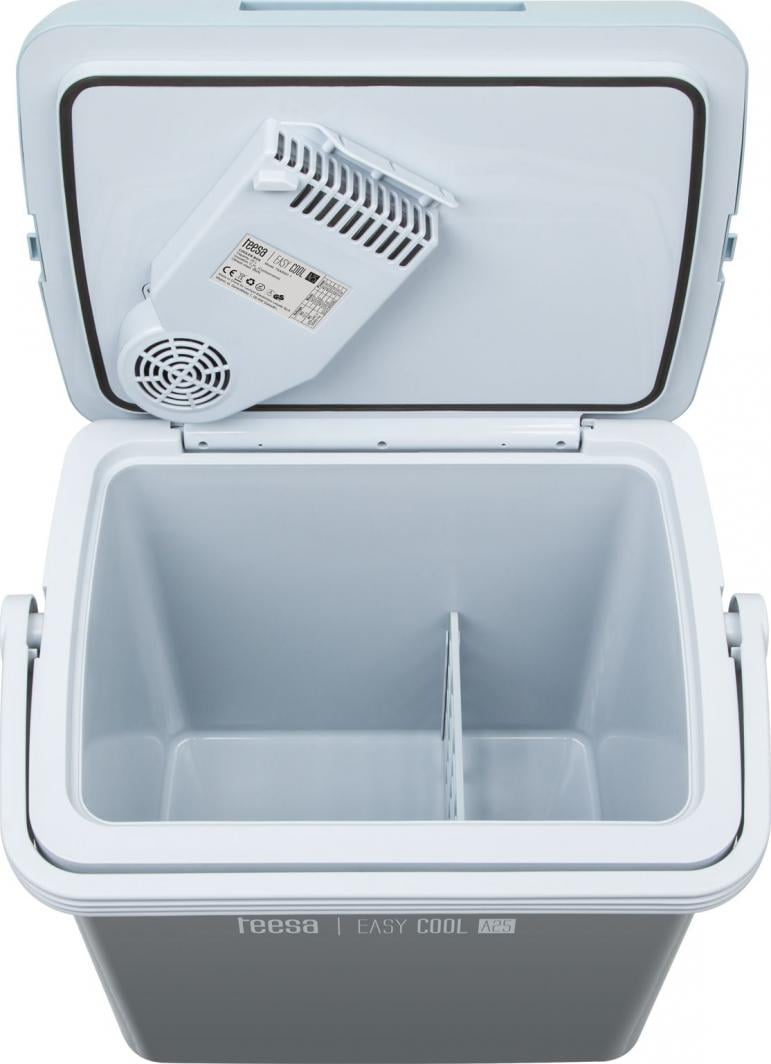 Холодильник туристичний з функцією підігріву 25л Відпочинок в кемпінгу, пікнік в парку… Є багато ситуацій, в яких хочеться зберегти свіжу їжу або холодний напій.Тому завжди варто мати під рукою туристичний холодильник Teesa EASY COOL A25.Ви думаєте, який туристичний холодильник купити?Teesa EASY COOL A25 – ідеальний продукт як для спекотних літніх днів, так і для зимових подорожей.Дозволяє, залежно від зовнішніх умов, охолоджувати їжу до 6°C або розігрівати до +65°C.Тому це ідеальний пристрій для охолодження їжі під час літнього пікніка, а також для зберігання гарячих напоїв під час зимових розваг. Практичні рішення.Великий внутрішній простір, об’ємом 25 літрів, дозволяє легко розмістити в туристичному холодильнику Teesa ваші продукти – ви легко помістите в нього навіть 1,5-літрову пляшку.Вам не потрібно цікавитися, як працює туристичний холодильник і чи безпечний він?Робота Teesa EASY COOL A25 заснована на системі термоелектричних елементів Пельтьє, яка не містить шкідливого фреону.Дуже міцну конструкцію пристрою доповнює естетичний корпус сірих відтінків.Практичною зручністю є можливість живлення від мережі 230В або від розетки автомобільного прикурювача.