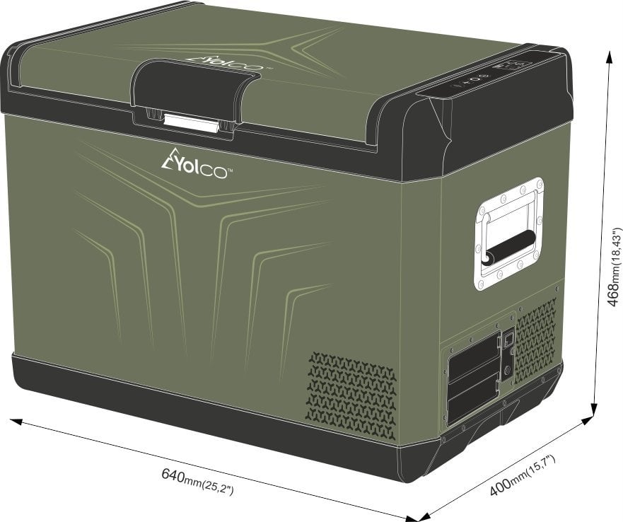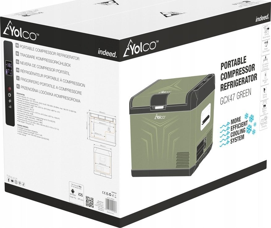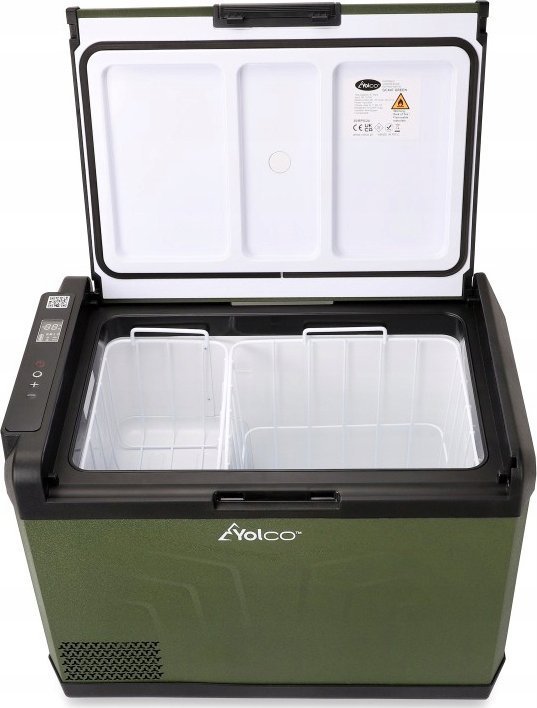 Портативний холодильник Yolco – ідеальне рішення для подорожей Завдяки вдосконаленій ізоляції та ефективному компресору процес охолодження відбувається швидко та ефективно.Використовуваний пластинчастий випарник збільшує поверхню теплообміну, що дозволяє ефективно та рівномірно охолоджувати вміст.Інноваційна компресорна технологія Пристрої Yolco засновані на передовій компресорній технології, визнаній найбільш ефективним і практичним методом охолодження.Завдяки йому холодильник не тільки підтримує відповідну температуру охолодження, але й дозволяє заморожувати продукти до -20°C, що гарантує повну гнучкість і універсальність використання.Багато різних варіантів живлення Щоб запустити процес охолодження в холодильнику, необхідно підключити його до відповідного джерела живлення.Є кілька варіантів живлення: Постійний струм – гніздо автомобільного прикурювача (12/24 В – проводка в комплекті) Змінний струм – мережева розетка (100 240 В – проводка в комплекті) Спеціальна модульна батарея Yolco SX4B або SC4B (не входить в комплект) – холодильник обладнано відповідним слотом Спеціальна зовнішня батарея Yolco CSX5 або RSX6 (не входить в комплект) Подивіться, що відрізняє Компресорний холодильник Yolco. Панель управління з чітким світлодіодним екраном дозволяє інтуїтивно зрозуміло керувати пристроєм.Холодильник оснащений трансмітером Bluetooth 5.0.Це дозволяє керувати ним за допомогою програми для мобільних пристроїв (Android/iOS).Практичні внутрішні корзини захищають стінки від пошкоджень.Ергономічні ручки дозволяють зручно переміщати пристрій.Внутрішні кошики полегшують вийняття та управління вмістом холодильника.4 варіанти живлення – холодильник оснащений слотом для модульної батареї та розетками.Внутрішнє освітлення полегшує керування вмістом холодильника. Технічні дані: Загальна ємність: 47 л (10,3 галона) Характеристики джерела живлення: DC 12 В/4,2 А, 24 В/2,1 А, змінний струм 100–240 В, 50–60 Гц, макс. 11.1V; 173Wh / повна камера / внутрішня температура: +5°C / температура навколишнього середовища: +25°C: режим MAX – 3 год. 10 хв., режим ECO – 5 год. 45 хв. N, T, SN, ST Температура навколишнього середовища: від +10°C до +43°C (від +50°F до +109,4°F) Рівень шуму: 45 дБ Холодоагент: R1234YF (43 г) GWP: 4 Комплектація: портативний компресорний холодильник GCX47 GREEN Шнур живлення 12/24 В (довжина ‑ 3,5 м) Адаптер змінного/постійного струму зі шнуром живлення 100–240 В (ЄС/Великобританія) Внутрішні кошики Посібник користувача
