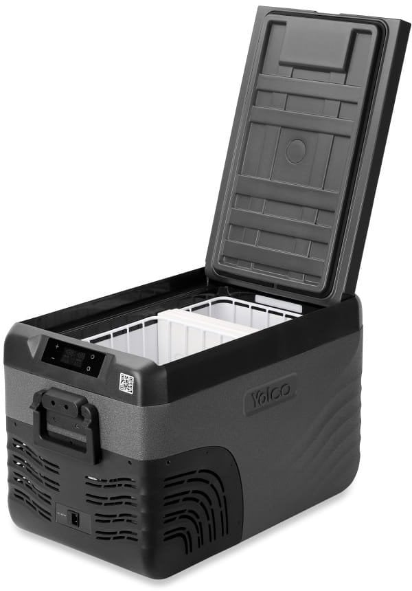 Для охолодження їжі під час подорожі Завдяки високоякісній ізоляції та ефективному компресору процес охолодження відбувається виключно швидко, зберігаючи продукти свіжими протягом тривалого часу.Додатково пристрій має дві холодильні камери з окремим Dual-Zone регулюванням температури, що дозволяє зберігати різні продукти в ідеальних умовах.Можливість збільшення об’єму холодильної камери за рахунок видалення перегородки ще більше підвищує гнучкість пристрою.Компресорна технологія Пристрої працюють на основі компресорної технології, яка є найбільш ефективним і практичним методом охолодження.Завдяки йому холодильник не тільки підтримує відповідну температуру охолодження, але й дозволяє заморожувати продукти навіть до -20°C, забезпечуючи повну гнучкість і універсальність використання.Кілька варіантів заряджання Щоб розпочати процес охолодження холодильника, його потрібно підключити до джерела живлення.Холодильник може живитися від: Постійного струму через гніздо автомобільного прикурювача (12/24 В – електропроводка в комплекті) Змінного струму через мережеву розетку (100-240 В – проводка в комплекті) Спеціального зовнішнього акумулятора Yolco CSX5 або RSX6 (не входить в комплект) Відкрийте для себе переваги компресорного холодильника Yolco Практичні внутрішні кошики захищають стіни від пошкоджень.Внутрішнє освітлення полегшує управління вмістом холодильника.Панель управління з чітким світлодіодним екраном дозволяє інтуїтивно зрозуміло керувати пристроєм.Холодильник оснащений трансмітером Bluetooth 5.0.Це дозволяє керувати ним за допомогою програми для мобільних пристроїв (Android/iOS).Ергономічні ручки дозволяють зручно переміщати пристрій.Внутрішні кошики полегшують вийняття та управління вмістом холодильника.Практичні внутрішні корзини захищають стінки від пошкоджень.Внутрішнє освітлення полегшує управління вмістом холодильника.Технічні дані: Загальний об’єм: 25 л (5,5 галона) Загальний об’єм (після зняття перегородки): 28 л (6,2 галона) Об’єм правої камери: 15 л (3,3 галона) Об’єм лівої камери: 10 л (2,2 галона) Характеристики джерела живлення: DC 12 В/5 A, 24 В/2,5 A, змінний струм 100‑240V, 50‑60Hz, max 1.2A Кількість камер охолодження: 2 Діапазон температур охолодження: від +20°C до -20°C (від +68°F до -4°F) Енергоспоживання: 60W Кліматичний клас: N, T, SN, ST Температура навколишнього середовища: від +10°C до +43°C (від від +50°F до +109,4°F) Рівень шуму: 45 дБ Холодоагент: R1234YF (40 г) GWP: 4 Комплектація: портативний компресорний холодильник KX30 CARBON Шнур живлення 12/24 В (довжина – 3,5 м) Адаптер змінного/постійного струму зі шнуром живлення 100–240 В (ЄС/Великобританія) Внутрішній кошики Інструкція з експлуатації
