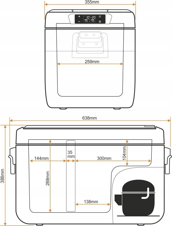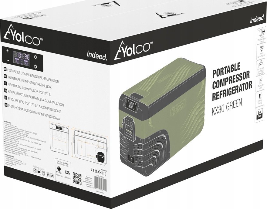 Для охолодження їжі під час подорожі Завдяки високоякісній ізоляції та ефективному компресору процес охолодження відбувається виключно швидко, зберігаючи продукти свіжими протягом тривалого часу.Додатково пристрій має дві холодильні камери з окремим Dual-Zone регулюванням температури, що дозволяє зберігати різні продукти в ідеальних умовах.Можливість збільшення об’єму холодильної камери за рахунок видалення перегородки ще більше підвищує гнучкість пристрою.Компресорна технологія Пристрої працюють на основі компресорної технології, яка є найбільш ефективним і практичним методом охолодження.Завдяки йому холодильник не тільки підтримує відповідну температуру охолодження, але й дозволяє заморожувати продукти навіть до -20°C, забезпечуючи повну гнучкість і універсальність використання.Кілька варіантів заряджання Щоб розпочати процес охолодження холодильника, його потрібно підключити до джерела живлення.Холодильник може живитися від: Постійного струму через гніздо автомобільного прикурювача (12/24 В – електропроводка в комплекті) Змінного струму через мережеву розетку (100-240 В – проводка в комплекті) Спеціального зовнішнього акумулятора Yolco CSX5 або RSX6 (не входить в комплект) Відкрийте для себе переваги компресорного холодильника Yolco Практичні внутрішні кошики захищають стіни від пошкоджень.Внутрішнє освітлення полегшує управління вмістом холодильника.Панель управління з чітким світлодіодним екраном дозволяє інтуїтивно зрозуміло керувати пристроєм.Холодильник оснащений трансмітером Bluetooth 5.0.Це дозволяє керувати ним за допомогою програми для мобільних пристроїв (Android/iOS).Ергономічні ручки дозволяють зручно переміщати пристрій.Внутрішні кошики полегшують вийняття та управління вмістом холодильника.Практичні внутрішні корзини захищають стінки від пошкоджень.Внутрішнє освітлення полегшує управління вмістом холодильника.Технічні дані: Загальний об’єм: 25 л (5,5 галона) Загальний об’єм (після зняття перегородки): 28 л (6,2 галона) Об’єм правої камери: 15 л (3,3 галона) Об’єм лівої камери: 10 л (2,2 галона) Характеристики джерела живлення: DC 12 В/5 A, 24 В/2,5 A, змінний струм 100‑240V, 50‑60Hz, max 1.2A Кількість камер охолодження: 2 Діапазон температур охолодження: від +20°C до -20°C (від +68°F до -4°F) Енергоспоживання: 60W Кліматичний клас: N, T, SN, ST Температура навколишнього середовища: від +10°C до +43°C (від від +50°F до +109,4°F Рівень шуму: 45 дБ Холодоагент: R1234YF (40 г) GWP: 4 Вміст упаковки: портативний компресорний холодильник KX30 GREEN Шнур живлення 12/24 В (довжина – 3,5 м) Адаптер змінного/постійного струму зі шнуром живлення 100–240 В (ЄС/Великобританія) Внутрішні кошики Користувач посібник