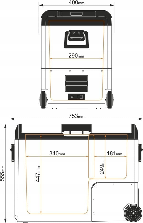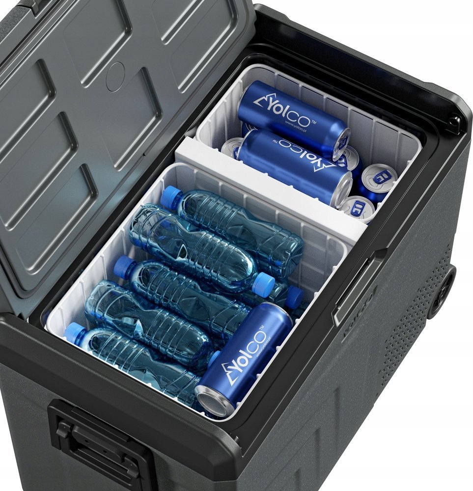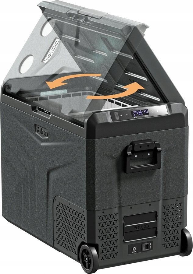 Портативний компресорний холодильник Yolco TCX60 Carbon Портативний холодильник використовується для охолодження харчових продуктів. Завдяки високоякісній ізоляції та ефективному компресору процес охолодження відбувається надзвичайно швидко. Пристрій має дві камери охолодження, оснащені окремим двозонним контролем температури. Збільшити об’єм холодильної камери можна, прибравши перегородку. Холодильник може працювати від постійного струму (12/24В), змінного струму (100-240В) або від акумулятора.(Модульна батарея Yolco та/або зовнішня батарея Yolco – не входить в комплект) або за допомогою фотоелектричної панелі (не входить в комплект) Пристрій має багаторівневий захист акумулятора автомобіля від розряду та захист від перенапруги, що захищає його від раптових стрибків напруги в електричній мережі Yolco TCX60 Carbon – переваги: Панель управління з чітким світлодіодним екраном дозволяє інтуїтивно зрозуміле керування пристроєм. Холодильник оснащений трансмітером Bluetooth 5.0. Це дозволяє керувати ним за допомогою програми для мобільних пристроїв (Android/iOS) Вбудований порт USB дозволяє заряджати зовнішні пристрої, такі як смартфон або планшет Ергономічні ручки та коліщатка дозволяють зручно переміщати пристрій Внутрішні кошики спрощують вийняття та керування вмістом холодильника Специфікація Загальний об’єм: 60 л (13,2 галона) Загальний об’єм (після зняття перегородки): 63 л (13,8 галона) Ємність лівого відділення: 46 л (10,1 галона) Ємність правого відділення: 14 л (3,1 галона) Технічні характеристики джерела живлення: DC 12 В/5 А, 24 В/2,5 А, 100-240 В змінного струму, 50-60 Гц, макс. 15600mAh;173Wh / повна камера / внутрішня температура: +5°C / температура навколишнього середовища: +25°C: режим MAX – 3h, 10min, ECO mode – 5h, 45min Роз’єм USB: 5V/1A Кількість камер охолодження: 2 Діапазон температур охолодження: від +20°C до -20°C від +68°F до -4°F) Споживання енергії: 60 Вт Кліматичний клас: SN, N, T, ST Температура навколишнього середовища: від +10°C до +43°C (від +50°F до +109,4°F) Рівень шуму: 45 дБ Холодоагент: R1234YF (40 г) GWP: 4 Тип підключення: Bluetooth 5.0 (робочий діапазон до 10 м/32,8 футів) Діапазон частот: 2402 МГц – 2480 МГц Максимальна радіочастотна потужність: 2 дБм Розміри (Ш x В x Г): 753 x 555 x 400 мм (29,6 x 21,8 x 15,7 дюймів) Вага нетто: 16,6 кг (36,6 фунтів) Вага брутто: 22,8 кг (50,3 фунтів) Комплектація Портативний компресорний охолоджувач Шнур живлення 12/24 В (довжина – 3,5 м) Адаптер змінного/постійного струму з кабелем живлення 100-240 В (ЄС/Великобританія) Посібник користувача