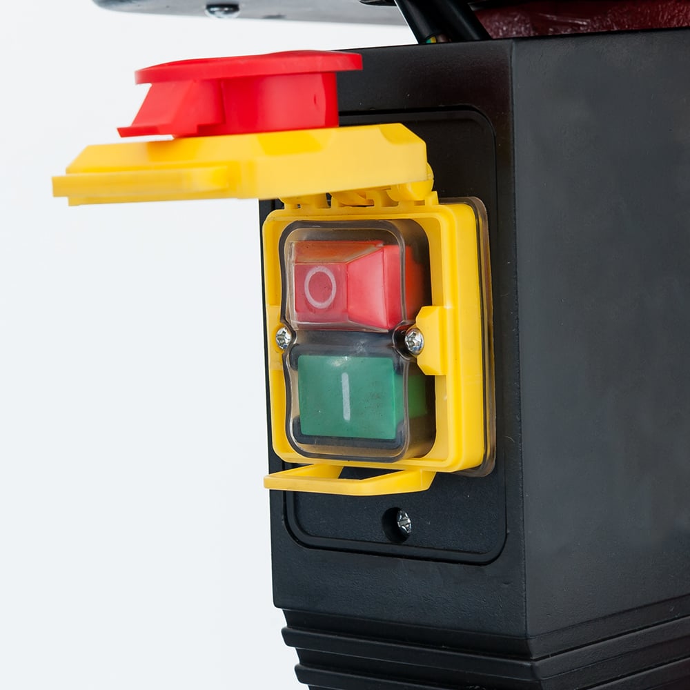 Стовпчастий дриль 1100 Вт (77351) Характеристики: Робочий стіл і основа з литої сталі Запобіжний перемикач всередині ремінної коробки передач Система регулювання висоти зубчастого столу Лазерна вказівка (в окремих моделях) Передній перемикач дрилі Налаштування глибини свердління Нахил столу +/- 45° Пластикова кришка свердла Можливість прикріпити лещата Литі алюмінієві шківи Легке регулювання клинового ременя Технічна дані: Потужність двигуна: Живлення: 230V / 50Hz / 1Ph Діаметр: колони 92 мм Макс. діаметр ручки: 32 мм Регулювання ручки: 5 – 25 мм Подача шпинделя: 120 мм Кількість швидкостей: 12 Оберти: 150, 240, 270, 330, 430, 470, 830, 1030, 1270, 1430, 1790, 2450 об/хв Кріплення ручки: MTIV Відстань від шпинделя до колони: 270 мм. Відстань від шпинделя до столу: 685 мм. Відстань від шпинделя до основи: 1205 мм. Розмір столу: 420 x 480 мм. Розмір основи: 450 x 560 мм. Вага: 145 кг.