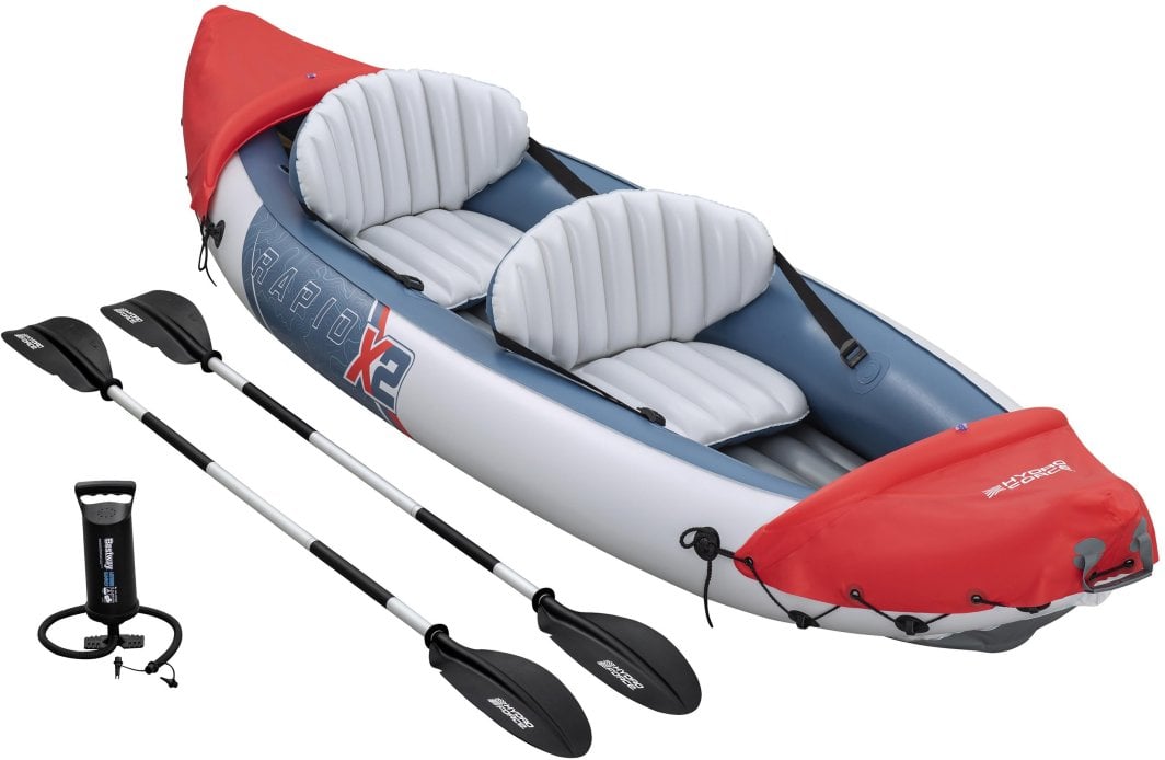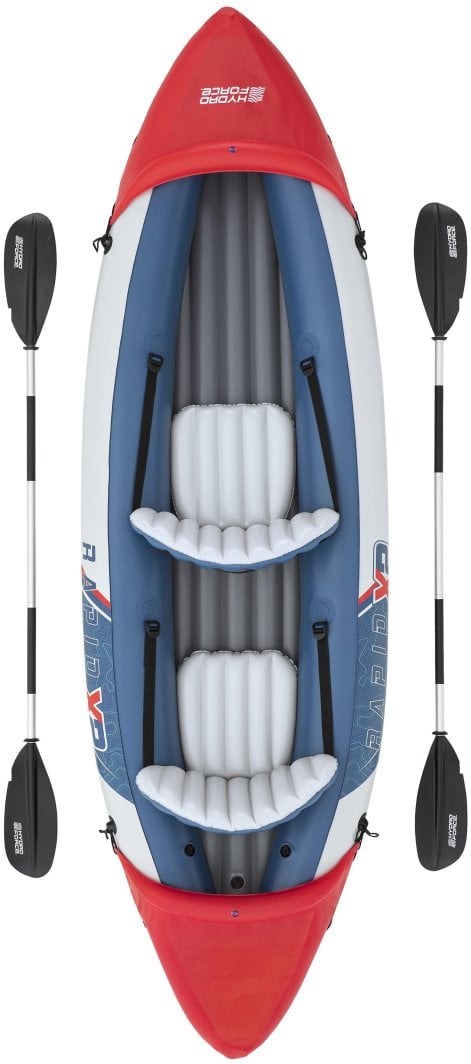Двомісний надувний каяк 321 x 88 см Bestway 65077 – Ідеальний супутник для водних пригод Двомісний надувний каяк Rapid X2 від Bestway – чудовий вибір для любителів водних пригод.Завдяки компактним розмірам і продуманій конструкції забезпечує стабільність і комфорт під час плавання.Він ідеально підходить як для сплаву по річці, так і для спокійних поїздок на озеро.Комфортний відсік для сидіння з подушками безпеки Байдарка має відкритий кокпіт з твердою підлогою, що полегшує посадку та вихід.Два регульованих надувних сидіння забезпечують комфорт навіть під час тривалих круїзів, що робить його ідеальним вибором для пар або друзів.Стійкий до проколів матеріал і легке транспортування Виготовлений із міцного матеріалу Inflata-Shield, каяк стійкий до проколів для тривалого використання.Після скачування його компактні розміри полегшують транспортування та зберігання, що робить його практичним рішенням для кожного любителя водних видів спорту.Знімні ласти для кращої маневреності Байдарка оснащена знімними ластами, які покращують маневреність на воді, дозволяючи вам легше маневрувати в різноманітних умовах.Це робить кожну подорож ще більш захоплюючою.Набір з веслами, насосом і сумкою для транспортування Набір для байдарки включає два алюмінієвих весла довжиною 230 см, ручний насос подвійної дії та сумку для транспортування.Додатково в комплект входить ремонтна латка, що забезпечує повну готовність до плавання в будь-який час. Технічні характеристики двомісної надувної байдарки Bestway 65077 Бренд: Bestway Модель: Rapid Ручний насос: подвійної дії Сумка для транспортування: є Ремонтна латка: є Код виробника: 65077 EAN (GTIN): 6941607364598 Не зволікайте!Замовляйте зараз, щоб насолодитися незабутніми враженнями від плавання!