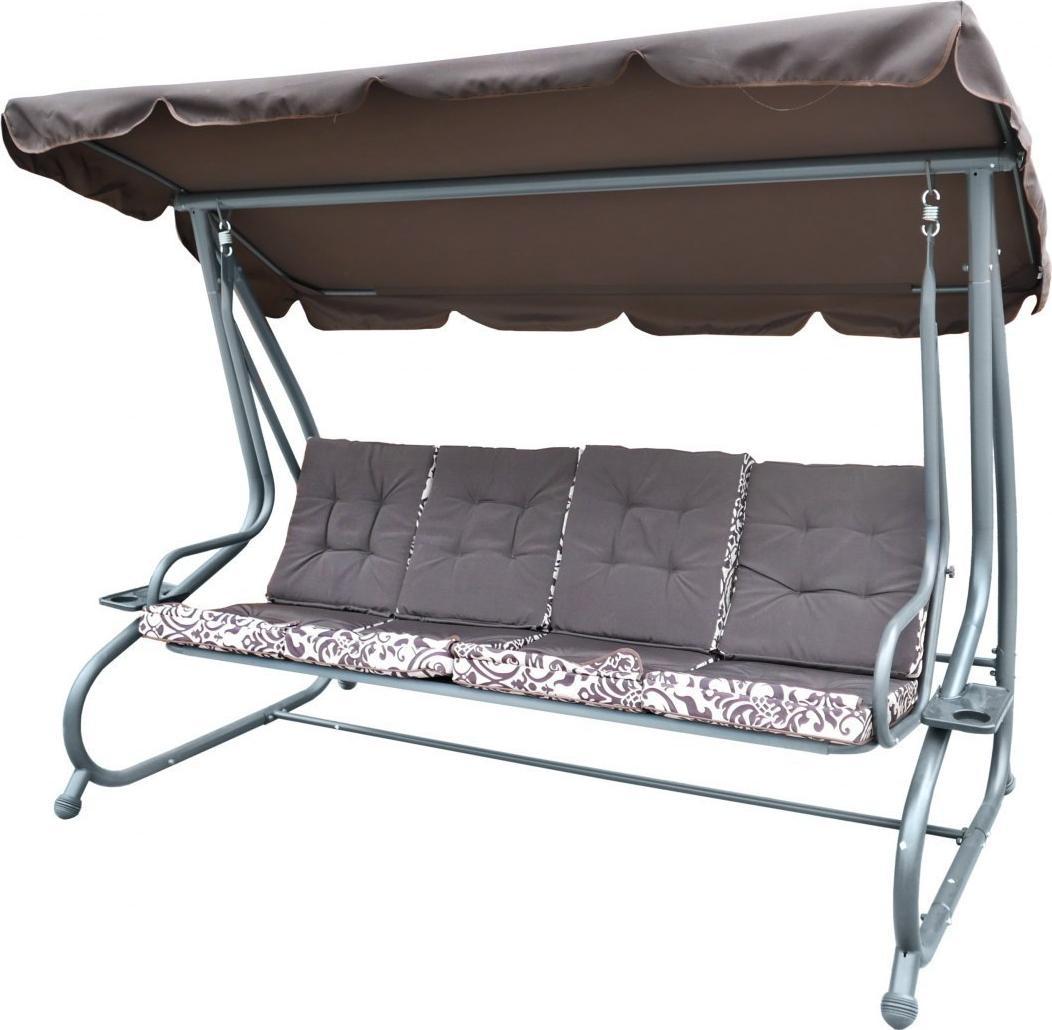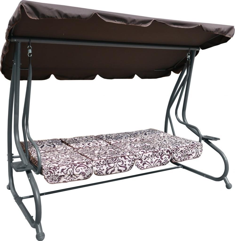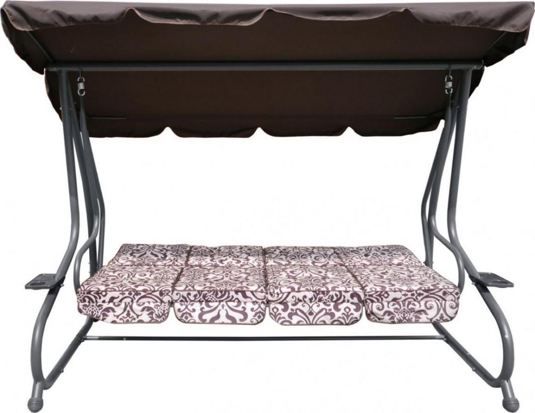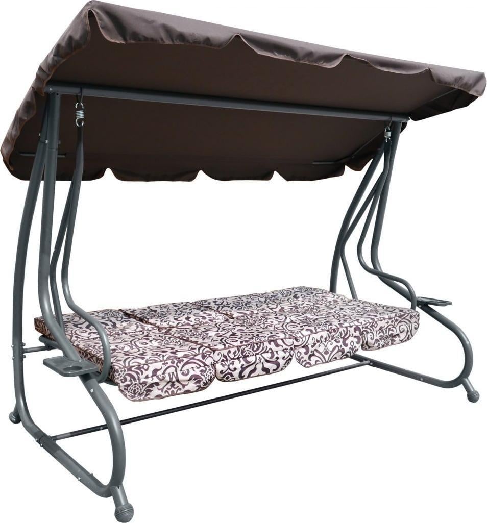 Опис Садові гойдалки зі складаним сидінням і регульованим навісом, темно-коричневого кольору з малюнком [8078 PATTERN CB] Сидіння виконано з матеріалу Textiline з переплетенням 2х1. Матеріал, з якого виготовлена ​​сітка, – поліефірна пряжа, покрита вінілом.Textiline призначений для зовнішнього використання завдяки високій стійкості до суворих погодних умов.Сітка надзвичайно гнучка і стійка до розтягування, що додатково впливає на комфорт використання, а сам матеріал не деформується.багатоступінчасте, плавне регулювання навісу, чохол навісу з поліестеру високої щільності 180 г, зручне розкладне сидіння, яке можна використовувати як для сидіння, так і для лежання, 4 окремих сидіння, наповнені губкою для оббивки, бл. Ширина 6 см, 2 підставки для напоїв, кріплення гойдалки на пружинах, конструкція зі сталі з порошковим покриттям, високоякісні зварні шви, висока стійкість до погодних умов, масивна нековзна гума на кінцях ніжок, дуже легко підтримувати в чистоті, чохли на сидіння з поліестеру вагою 160 г, максимальне навантаження 300 кг, розміри Зовнішні розміри ширина прибл. 240 см, глибина бл. 114 см, висота плафону в центральній частині бл. 168 см, вага прибл. 46 кг, висота сидіння, спинки без матраца прибл. 50 см, глибина сидіння без матраца прибл. 48 см, довжина сидіння без рами прибл. 193 см, ширина сидіння в розкладеному вигляді прибл. 100 см, довжина купола прибл. 230 см, ширина бл. 117 см, ширина подушки сидіння прибл. 48 см, висота сидіння бл. 51 см, висота спинки бл. 51 см, ширина в розкладеному вигляді прибл. 101 см, Пакувальний набір складається з двох упаковок 230x57x16 см 28,5 кг 200x57x16 см 23,5 кг Товщина трубок ніжок рами 48 х 1,1 мм, верхньої рами 48 х 1,1 мм, рами сидіння 32 х 1,2 мм, посилення гойдалок 25 х 0,8 мм, рами сидіння 28 х 1,5 мм, рама навісу 16 х 0,6 мм