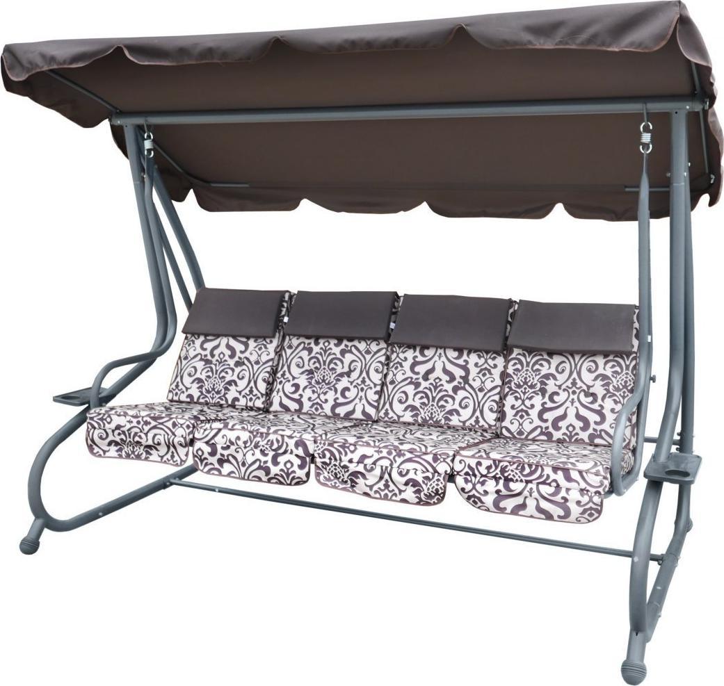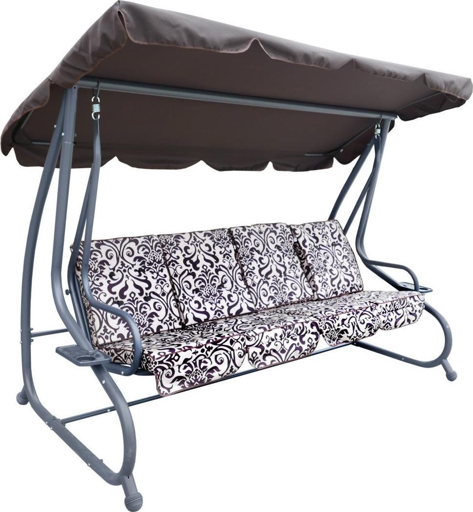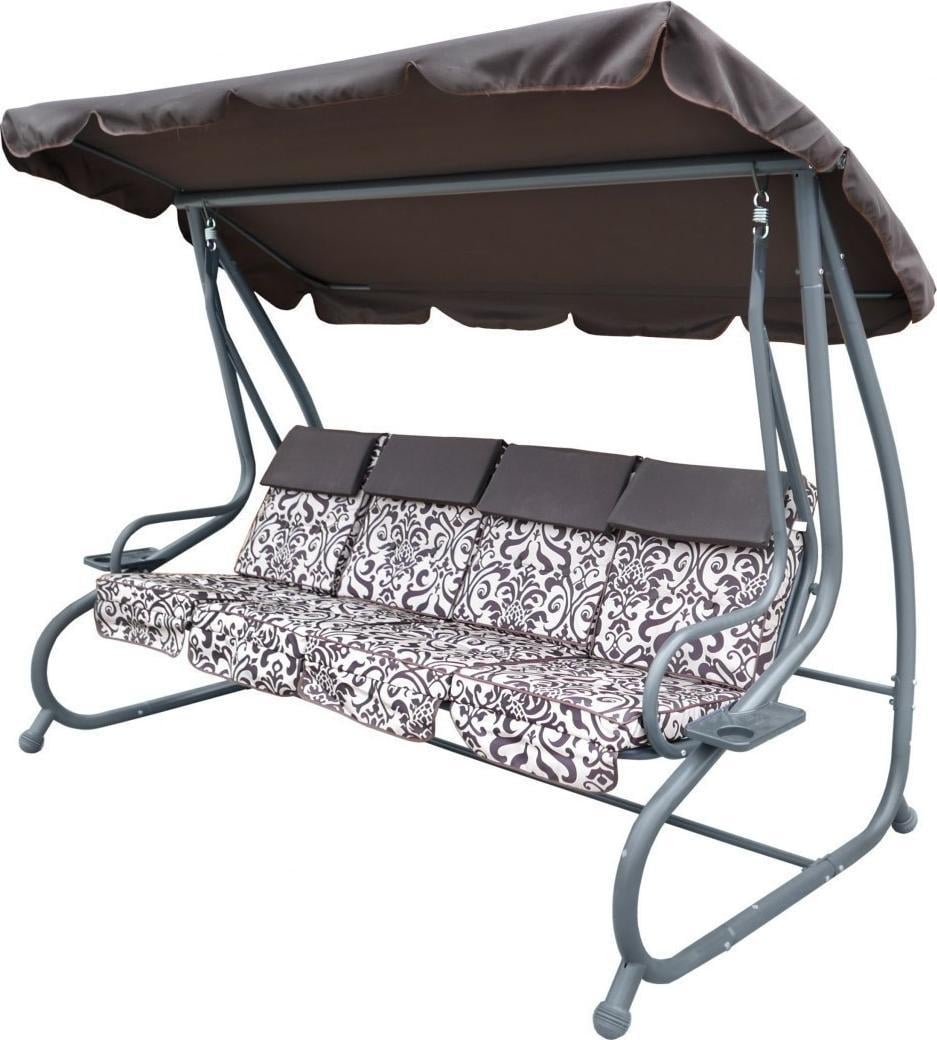Опис Садові гойдалки зі складаним сидінням і регульованим навісом, темно-коричневого кольору з малюнком [8078 PATTERN CB] Сидіння виконано з матеріалу Textiline з переплетенням 2х1. Матеріал, з якого виготовлена ​​сітка, – поліефірна пряжа, покрита вінілом.Textiline призначений для зовнішнього використання завдяки високій стійкості до суворих погодних умов.Сітка надзвичайно гнучка і стійка до розтягування, що додатково впливає на комфорт використання, а сам матеріал не деформується.багатоступінчасте, плавне регулювання навісу, чохол навісу з поліестеру високої щільності 180 г, зручне розкладне сидіння, яке можна використовувати як для сидіння, так і для лежання, 4 окремих сидіння, наповнені губкою для оббивки, бл. Ширина 6 см, 2 підставки для напоїв, кріплення гойдалки на пружинах, конструкція зі сталі з порошковим покриттям, високоякісні зварні шви, висока стійкість до погодних умов, масивна нековзна гума на кінцях ніжок, дуже легко підтримувати в чистоті, чохли на сидіння з поліестеру вагою 160 г, максимальне навантаження 300 кг, розміри Зовнішні розміри ширина прибл. 240 см, глибина бл. 114 см, висота плафону в центральній частині бл. 168 см, вага прибл. 46 кг, висота сидіння, спинки без матраца прибл. 50 см, глибина сидіння без матраца прибл. 48 см, довжина сидіння без рами прибл. 193 см, ширина сидіння в розкладеному вигляді прибл. 100 см, довжина купола прибл. 230 см, ширина бл. 117 см, ширина подушки сидіння прибл. 48 см, висота сидіння бл. 51 см, висота спинки бл. 51 см, ширина в розкладеному вигляді прибл. 101 см, Пакувальний набір складається з двох упаковок 230x57x16 см 28,5 кг 200x57x16 см 23,5 кг Товщина трубок ніжок рами 48 х 1,1 мм, верхньої рами 48 х 1,1 мм, рами сидіння 32 х 1,2 мм, посилення гойдалок 25 х 0,8 мм, рами сидіння 28 х 1,5 мм, рама навісу 16 х 0,6 мм