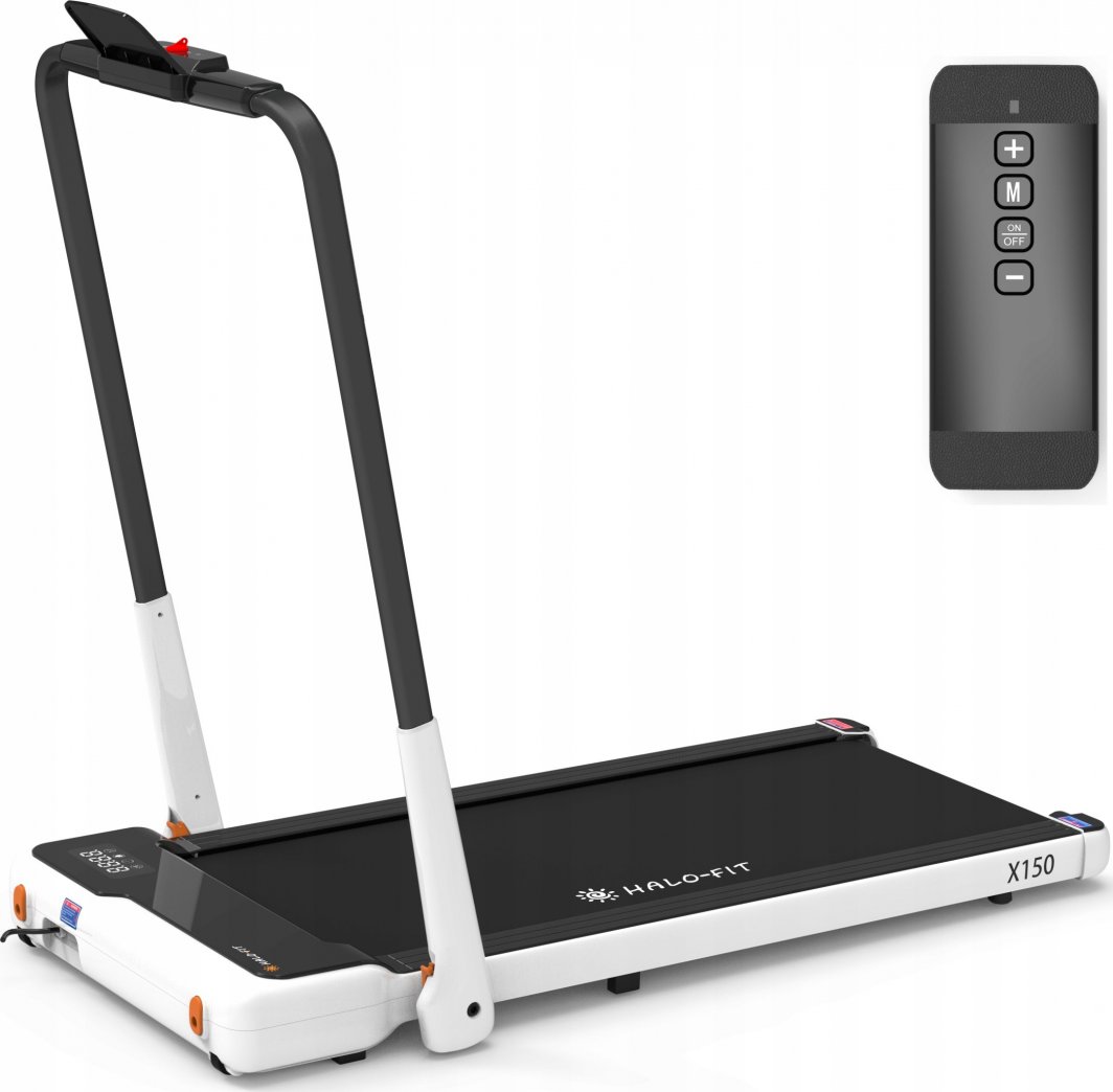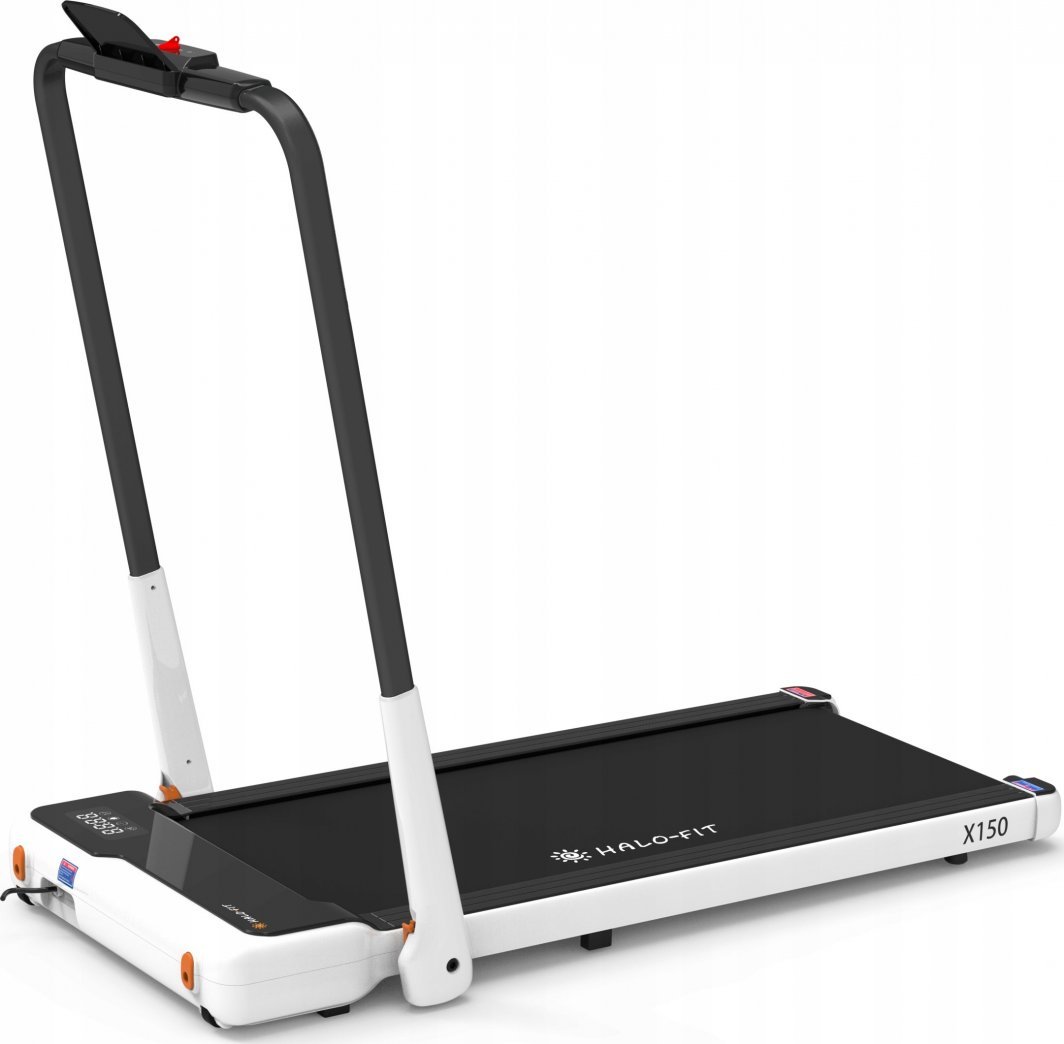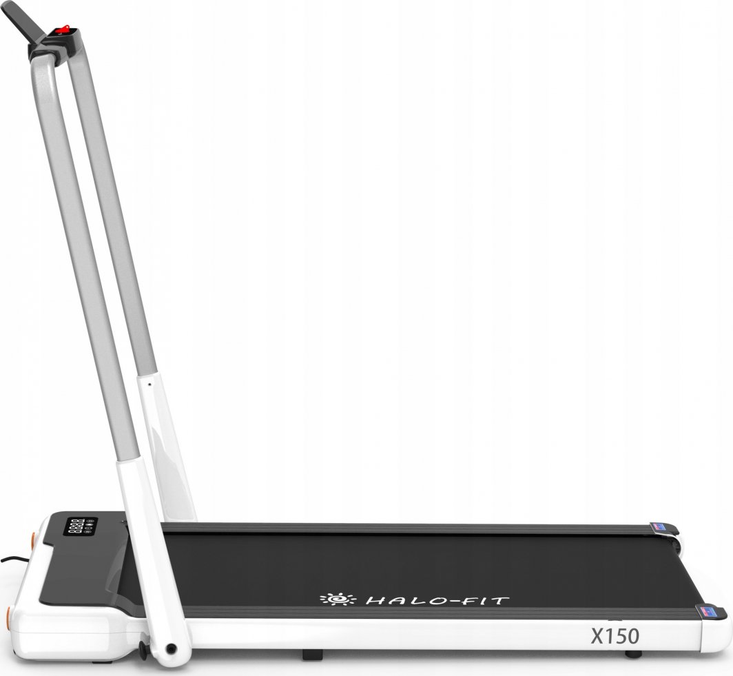 Бігова доріжка HALO-FIT X150 – ідеальний пристрій для домашніх тренувань.Широке бігове полотно розміром 105 х 42 см, широкий діапазон швидкості від 1 до 12 км/год і потужний двигун 1,5 к.с.Все це дозволяє проводити ефективні тренування людям будь-якого віку, незалежно від зросту та спортивного рівня.Максимальне навантаження 110 кг.Якісна система амортизації забезпечує комфорт ваших суглобів, а складні ручки забезпечують додаткову безпеку під час тренувань.У комплект також входить пульт, який дозволяє регулювати швидкість.На дисплеї відображаються всі основні параметри тренування: швидкість, час, пройдена відстань, пульс, витрачені калорії.Вимірювання пульсу здійснюється за допомогою вбудованих в ручки сенсорних датчиків.Бігову доріжку легко переміщати завдяки транспортувальним роликам, а невелика висота (16 см) дозволяє легко зберігати її під ліжком або диваном.Бігова доріжка HALO-FIT X150 – ідеальне рішення для всієї родини. Технічні дані Швидкість 12,0 км/год.Інструкція доступна польською мовою. Крок регулювання швидкості кожні 0.1 км/год. Потужність двигуна 1.50 HP Максимальне навантаження 110.0 кг Режими програми: ручний. Довжина бігового полотна 105 см. Ширина бігового полотна 42 см. Розмір бігового полотна 105 x 42 см. Товщина бігового полотна 1.6 мм. Амортизація пояса: так Змащення бігового полотна доступне Ручна система змащення бігового полотна Товщина настилу 16 мм Датчик частоти серцевих скорочень: є Підставка для планшета: є Консоль з багатофункціональним РК-дисплеєм Показання, що відображаються на консолі: час/відстань/швидкість/частота серцевих скорочень/калорії Рама: доступні металеві транспортувальні ролики Функція складання: доступна Мультимедіа: немає Роз’єми: немає Вага нетто 26,0 кг Вага брутто 29,0 кг Живлення: мережа 220 В