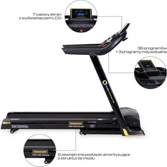 Тренування в будь-яких умовах. Електрична бігова доріжка HMS BE5856 – це пристрій, який ідеально підходить для використання вдома.Подбайте про свою фізичну форму, коли є час, і не переживайте про погану погоду чи несприятливу навколишнє середовище.Завдяки різноманітності доступних конфігурацій ви можете адаптувати вправи під свої індивідуальні потреби – від швидкості до зміни кута нахилу.Бігайте або ходіть у власному темпі!Велика бігова стрічка забезпечує комфортний простір, щоб ви могли тренуватися вільно та без будь-яких перешкод.Комфорт і, перш за все, захист від травм забезпечується амортизацією, яка дозволяє бігати, не боячись отримати травму.Це гарантовано шестикомпонентною подушкою всередині та двома зовнішніми, які завдяки медовій структурі забезпечують феноменальну амортизацію.Ці рішення створюють відчуття, що ви біжите по м’якій землі.Тренуйтеся так, як вам подобається. Якщо ви хочете контролювати умови своїх тренувань, електрична бігова доріжка HMS BE5856 стане ідеальним рішенням.Пристрій має широкий діапазон доступних швидкостей – від 1 км/год до 18 км/год, щоб задовольнити потреби кожного користувача та адаптуватися до будь-якої програми вправ – як для любителів ходьби, так і для вимогливих бігунів.Для кращого відображення природного середовища тренувань бігова доріжка оснащена системою зміни кута нахилу, завдяки якій можна задіяти різні групи м’язів – так само, як під час бігу в гору в полі.У вашому розпорядженні діапазон від 0° до 15°.Просто змініть налаштування під час тренування, і пристрій автоматично підлаштується до необхідної конфігурації.Жодних перерв у навчанні, жодних зайвих витрат, жодних клопотів.Зручність у вас під рукою Управління всією електронікою здійснюється через панель керування пристрою.За регулювання відповідають автоматичні системи, що дозволяє уникнути труднощів з ручним управлінням перемиканням режимів – все для того, щоб ви могли повністю використовувати час, відведений для фізичної активності.Великий 7-дюймовий РК-екран робить вміст чітко видимим, а програми, які пропонують бігові доріжки HMS BE5856, прості у використанні.Доступно 36 режимів тренувань і 3 індивідуальних режими.Крім того, пристрій оснащений рядом корисних технологій, таких як вимірювання часу тренування, поточної швидкості, кута нахилу, пройденої відстані, кількості спалених калорій або навіть пульсу – це вимірюється за допомогою сенсорних датчиків.Обладнання також може оцінити вміст жиру в організмі за допомогою функції жиру в організмі.Тримачі для телефону та пляшки з водою додатково підвищать комфорт занять.Добре продумана конструкція Незважаючи на широкий простір для вправ, який пропонують бігові доріжки, і досить очевидну велику вагу, пристрій не створює жодних проблем у домашніх умовах.Завдяки можливості скласти його після завершення вправ, ви можете легко звільнити простір, зайнятий обладнанням, і вам не доведеться турбуватися про те, що ваш будинок буде захаращений або не вистачить місця для іншого обладнання.Система складання за допомогою газового приводу є інтуїтивно зрозумілою, і будь-хто зможе керувати нею.Однак такі рішення не знижують довговічність пристрою.Обладнання може витримувати навантаження до 130 кг – це завдяки як відмінному дизайну, так і продуктивному двигуну, без якого бігова д