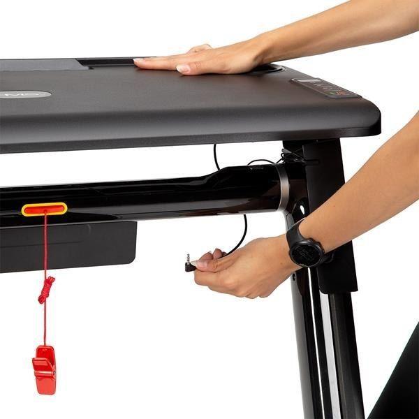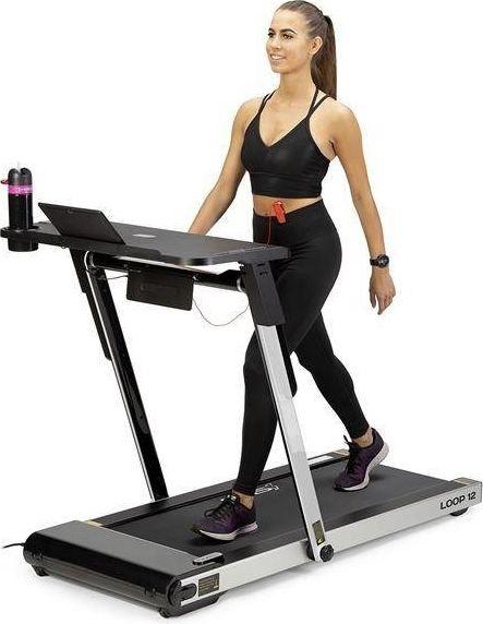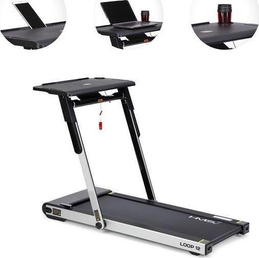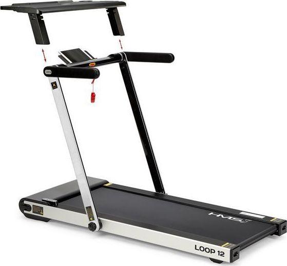 Loop12 Multi HMS Бігова доріжка LOOP12 MULTI — це технологія 21 століття.Сучасний та інтуїтивно зрозумілий у використанні.Сучасний дизайн бігової доріжки підтверджує, що вона була розроблена в найбільш елегантній формі.Фактором, який відрізняє цю модель від інших, є можливість встановити столик на консоль.Ідеально підходить для роботи на столі. Завдяки столу тепер можна буде поєднувати роботу і фізичні навантаження.Підключення столу обмежує швидкість бігової доріжки до 6 км/год, тому працювати з ноутбуком під час ходьби не буде проблемою.На столі стоїть пляшка з водою або підстаканник, а також підставка для планшета.Завдяки спеціальній панелі керування ми можемо в будь-який момент сповільнити або вимкнути бігову доріжку.Це рішення є чудовою альтернативою роботі за столом.Інтенсивні тренування вдома. Знявши стіл, ви отримуєте класичний пристрій, адаптований для проведення інтенсивних тренувань вдома.Конструкція бігової доріжки забезпечує комфортний простір для занять, а силікагелева система амортизації гарантує легкість і еластичність бігу та безпеку колін.Панель керування Ергономічна панель керування дозволяє зручно керувати такими параметрами, як час, швидкість, відстань, калорії та кількість кроків.Особливо корисними є кнопки для швидкого вибору швидкісних програм.Одним рухом ми можемо змінити швидкість до 3 або 5 км/год.Bluetooth Завдяки функції Bluetooth бігову доріжку можна підключити до програми FitShow, яку можна легко завантажити на телефон, відсканувавши QR-код, який міститься в посібнику.Завдяки цьому додатку ми зможемо відслідковувати наші тренування та фіксувати їхній ефект, і, як результат, аналізувати прогрес наших вправ.Крім того, завдяки додатку ми можемо встановити зручну для нас програму тренувань і тому більше не турбуватися про зміну швидкості.Вбудовані динаміки Додатковою перевагою є вбудовані динаміки та можливість підключити MP3 або інший пристрій, щоб ми могли слухати улюблену музику під час тренування.Це рішення гарантує приємне та більш ефективне навчання.Компактні розміри Ще однією перевагою бігової доріжки є її розмір – завдяки складаним поручням вона не займає багато місця.Переміщення LOOP12 MULTI також не буде проблемою, завдяки встановленим транспортним колесам ми можемо переміщати бігову доріжку вертикально і горизонтально без особливих зусиль.