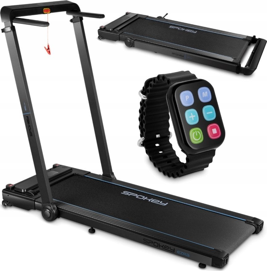 Електрична бігова доріжка EZRA – Ваш партнер у домашніх кардіотренуваннях.Електрична бігова доріжка EZRA має простий і сучасний дизайн.Це ідеальне рішення для людей, які хочуть займатися фізичними вправами вдома.Бігова доріжка оснащена вбудованим столом для ноутбука, планшета або смартфона, тому ви можете займатися під час перегляду фільму або прослуховування музики.А з дистанційним керуванням у стилі годинника контролювати швидкість бігової доріжки надзвичайно зручно.12 навчальних програм гарантують різноманітність та адаптацію навчання до ваших очікувань.Основні характеристики продукту Сучасний дизайн.Інтегрований стіл: ідеальне місце для ноутбука, планшета чи смартфона для роботи чи гри під час тренувань.Потужність двигуна: 1,5 к.с., забезпечує плавну і тиху роботу.Максимальна швидкість: 14 км/год, ідеальна для інтенсивного бігу.Нахил: регулює інтенсивність вашого тренування.Світлодіодний дисплей: відстежує час, відстань, швидкість, витрачені калорії.Програми тренувань: 12 різних програм, адаптованих до різних цілей тренувань.Протиковзка платформа: забезпечує безпеку під час використання.Регульовані вертикальні стійки: відрегулюйте висоту відповідно до ваших потреб.Дистанційне керування годинником: дистанційне керування швидкістю для більшої зручності.Транспортувальні колеса: легко переміщати бігову доріжку.Електрична бігова доріжка EZRA – це інноваційне рішення, яке завдяки столу дозволяє поєднувати тренування з використанням ноутбука, планшета або смартфона.Завдяки цьому ви можете ходити або бігати під час перегляду улюбленого серіалу або участі в онлайн-діловій зустрічі.Потужний двигун потужністю 1,5 к. с. дозволяє розвивати швидкість до 14 км/год, що дозволяє проводити інтенсивні бігові тренування.Крім того, двоступеневе регулювання нахилу та 12 програм тренувань дозволяють проводити різноманітні та персоналізовані тренування.Бігова доріжка EZRA оснащена платформою проти ковзання, регульованими вертикальними стійками і ключем безпеки, які забезпечують безпеку і комфорт використання.Колеса дозволяють легко транспортувати бігову доріжку.Бігова доріжка EZRA – ідеальний вибір для кожної активної людини, яка хоче підтримувати форму, не виходячи з дому.Завдяки цьому навчання проходить швидко і приємно.Завдяки 12 програмам тренувань і регульованому нахилу ви можете регулювати тип та інтенсивність вправ відповідно до ваших потреб.Домашня бігова доріжка EZRA допоможе вам досягти ваших тренувальних цілей оптимальним чином.Вдосконалений світлодіодний дисплей і можливість дистанційного керування швидкістю за допомогою пульта значно підвищують комфорт використання.Ключ безпеки, який слід завжди використовувати під час тренувань на біговій доріжці, підвищує рівень безпеки під час кожного тренування.Технічні характеристики товару: Тип: електрична бігова доріжка Потужність двигуна: 1,5 к. с. Максимальна швидкість: 14 км/год Максимальна швидкість після складання ручки з панеллю: 6 км/год Нахил: двоступеневий Дисплей: LED (час, дистанція, швидкість, витрачені калорії) Кількість програм: 12 Розміри: 143,8 х 69 х 117 см Розміри в розкладеному вигляді: 154 х 69 х 12 см Розмір ременя: 120 х 42 см Вага: 36,8 кг Максимальне навантаження: 100 кг Зберігання: вертикальне або горизонтальне Транспортувальні колеса: так, з додатковими опорними кол