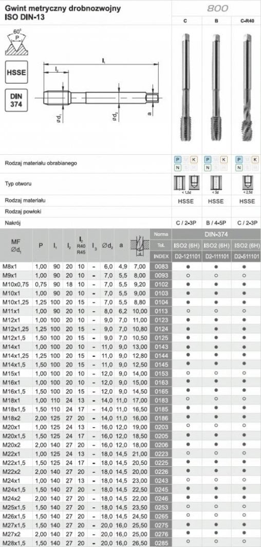 Fanar TAPPING M18x1 DIN-374B (6H) HSSE 800 – Високопродуктивний машинний мітчик Fanar TAPPING M18x1 DIN-374B (6H) HSSE 800 – це інструмент, який поєднує в собі точність і ефективність, ідеальний для обробки різьби в різних матеріалах.Завдяки своїй конструкції цей кран є відмінним вибором як для професіоналів, так і для любителів, які цінують якість і ефективність роботи.Геометрія та мікрогеометрія для ефективної обробки сталі Цей машинний мітчик розроблено з урахуванням оптимальної геометрії, що забезпечує ефективну обробку вуглецевої сталі, низьколегованої сталі та алюмінію.Завдяки ретельно підібраним кутам і формам лез інструмент забезпечує гладку і точну різьбу, що є вирішальним у багатьох промислових застосуваннях.Матеріал інструменту: швидкорізальна сталь HSSE з кобальтом Fanar THAP M18x1 виготовлена з швидкорізальної сталі HSSE, яка містить 5% кобальту.Цей склад матеріалу забезпечує високу стабільність леза та тривалу ефективність обробки, що робить його ідеальним інструментом для інтенсивного використання.Допуск ISO2 (6H) для прецизійної різьби Мітчик характеризується допуском ISO2 (6H), що забезпечує високу точність різьби.Завдяки цьому цей інструмент здатний задовольнити вимоги навіть найвибагливіших проектів, де точність має вирішальне значення.Розміри різьби та рекомендований різьбовий отвір Мітчик Fanar M18x1 має такі розміри: Розмір різьби: M16 Крок різьби: 1,5 мм Робоча довжина (l1): 100 мм Загальна довжина (l2): 20 мм Діаметр різьби (d2): 12 мм Діаметр (a): 9 мм Рекомендований отвір для різьби: 14,5 мм Застосування в наскрізних отворах Мітчик призначений для обробки наскрізних отворів, які робить його універсальним інструментом у різноманітних промислових і ремісничих застосуваннях.Його конструкція дозволяє легко і швидко створювати різьби в матеріалах з міцністю до 800 МПа.Ріжучі інструменти та приладдя для машин у пропозиції Пропозиція включає різноманітні ріжучі інструменти, такі як мітчики, плашки, фрези, свердла, стрічкові та циркулярні пилки, а також приладдя для машин, вимірювальні інструменти, абразивні матеріали та ручні інструменти.Завдяки широкому асортименту кожен знайде щось для себе.Технічні характеристики Fanar РІЗБА M18x1 DIN-374B (6H) HSSE 800 Бренд: Fanar Код виробника: D2-111101-0183 Кількість елементів в наборі: 1 Вага продукту в упаковці: 0,150 кг EAN (GTIN): 5900920205781 Матеріал: HSSE Стандарт: DIN 374 Тип різьби: M16 Замовляйте зараз, щоб насолодитися найкращою продуктивністю та якістю інструментів Fanar, доступних на Morele.net!