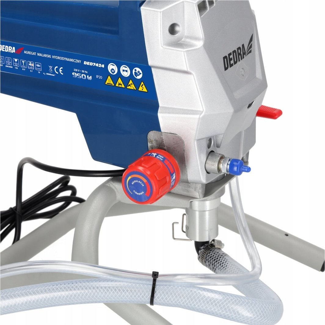 DEDRA PAINTING MACHINE 950W гідродинамічна фарбувальна установка – Ефективність та якість фарбування. Фарбувальна установка DEDRA DED7424 – професійний апарат, який змінить ваш підхід до фарбування.Завдяки потужності 950 Вт і максимальному робочому тиску 250 бар фарбування стає швидким і ефективним як у приміщенні, так і на вулиці.Максимальний робочий тиск 250 бар – Ефективність при фарбуванні Високий робочий тиск забезпечує точне і рівномірне нанесення фарби, що значно підвищує ефективність роботи.Завдяки цьому можна досягти чудових результатів за менший час.Потужність розпилення 2,1 л/хв – Швидке покриття великих площ Агрегат DEDRA DED7424 має вражаючу продуктивність розпилення 2,1 л/хв, що дозволяє покривати площу до 700 м² на день.Це ідеальне рішення для тих, хто цінує час і ефективність.Напірний шланг довжиною 15 метрів – свобода рухів під час роботи Завдяки напірному шлангу довжиною 15 метрів ви отримуєте повну свободу рухів під час фарбування.Це значно полегшує роботу, особливо у великих приміщеннях або на відкритому повітрі.Точне фарбування без смуг – Ідеальна обробка Агрегат DEDRA DED7424 дозволяє точно фарбувати як вертикально, так і горизонтально, що виключає ризик появи смуг.Завдяки цьому нанесене покриття виходить рівним і естетичним, що неодмінно задовольнить кожного користувача.Застосування в різних техніках фарбування – Універсальність агрегату Цей пристрій надзвичайно універсальний і ідеально підходить для фарбування стін в житлових і промислових будівлях, а також для напилення лаків, латексних фарб, масляних, акрилових і алкідних емалей.Його також можна використовувати для фарбування меблів, парканів та інших елементів декору.Високоякісні аксесуари в комплекті – Повне обладнання для фарбування У комплекті з пристроєм є все необхідне для ефективного фарбування, включаючи: напірний шланг довжиною 15 м. Високоякісний пістолет-розпилювач з фільтром DEDRA DED7434-517, насадка. Рожеві ключі для керування пристроєм. Щітка для чищення пістолета. Всмоктувальна труба з всмоктувальним шлангом/фільтром. Крапельниця для всмоктувальної труби. Інструкція з обслуговування польською мовою. Гарантійний талон від дверей до дверей Технічний специфікація агрегату DEDRA PAINTING MACHINE 950W – Основні параметри продукту Виробник – Dedra Код виробника – DED7424 Модель – DED7424 Тип – мембранний блок Максимальний робочий тиск – 250 бар Максимальна ефективність розпилення – 2,1 л/хв Потужність двигуна – 950 Вт Напруга живлення – 230 В Довжина шланга високого тиску – 15 м Компресійний механізм – поршневий насос Максимальна в’язкість фарби – 110 DIN Вага – 11 кг Довжина шнура живлення – 1,8 м Можливість використання різних розмірів сопел – так Замовляйте зараз, щоб насолодитися найкращою продуктивністю фарбування!Ідеально підходить для ваших потреб – доступний сьогодні в Apricot!