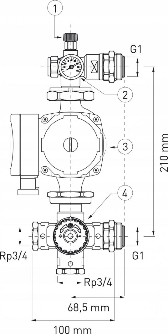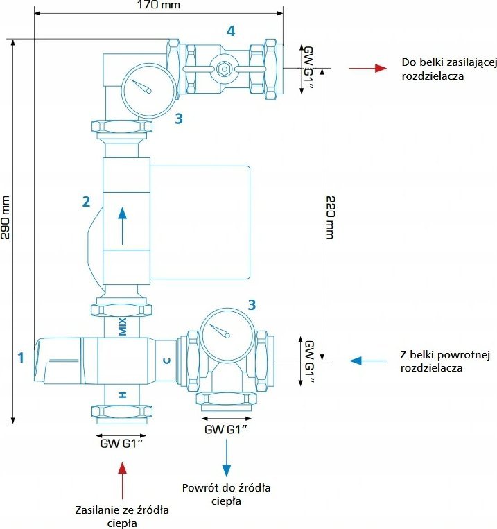 Ferro GM60GPA ЗМІШУЮЧА ГРУПА ДЛЯ 1″ ДІЛЬНИКА З ЕЛЕКТРОННИМ НАСОСОМ 25-6 130 // TG.SIZE.MIXING GROUP-60