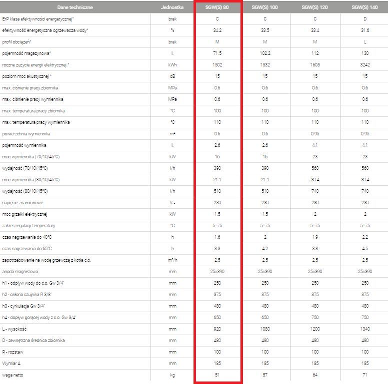 Обмінник гарячої води з підвісною спіраллю SGW(S) 80L ліворуч (06-084671) Характеристики: Змійовик, призначений для живлення від усіх типів котлів центрального опалення. Змійовики підключення з правого або лівого боку.До 50% довший термін служби завдяки захисту RESIST-TECH Високоякісна керамічна емаль EXTRA GLASS Стандартний захист – магнієвий анод. Ручний контролер із термостатом. Опис: Neptun² Комбі – підвісний теплообмінник діаметром всього 48 см. Забезпечує зручне підключення теплообмінника до котла центрального опалення.праворуч або ліворуч від обмінника, залежно від моделі.Невеликий діаметр дозволяє легко помістити його в будь-яку котельню.Вибір об’єму від 80 до 140 літрів робить його універсальним джерелом гарячої води.Зручний монтаж Джерелом тепла в теплообміннику Neptun² Kombi може бути будь-який котел центрального опалення, камін або звичайний електронагрівач.Для зручності монтажу обидва підключення до водопроводу заховані в нижній кришці за модулем управління.Конструкція теплообмінника також передбачає циркуляційний рукав, що дозволяє підключати зовнішній циркуляційний насос.Перевірена ізоляція Швидке нагрівання води в теплообміннику ГВП.забезпечується спіральною котушкою з великою поверхнею.У поєднанні з ефективною ізоляцією з щільного пінополіуретану це гарантує тривалу температуру води та економічну роботу.Антикорозійний захист Спеціально обпечена керамічна емаль EXTRA GLASS захищає бак теплообмінника від корозії та забезпечує гігієнічне використання.Змінний магнієвий анод також забезпечує підвищений антикорозійний захист бака та електронагрівача.Використання додаткового активного титанового анода гарантує роботу без обслуговування без необхідності обслуговування.Зручне управління Контролер теплообмінника Neptun Kombi пропонує можливість плавного регулювання температури в залежності від потреб домочадців.Розташована в нижній частині обмінника, забезпечує зручне керування.Гарантована якість Найкраща сировина, передові технології виробництва та кваліфікований персонал гарантують найвищу якість на кожному етапі виробництва.Це дозволяє надавати користувачам обмінника Neptun² Kombi гарантію на 60 місяців (подробиці в гарантійному талоні).Технічні дані: Графіка у фотогалереї