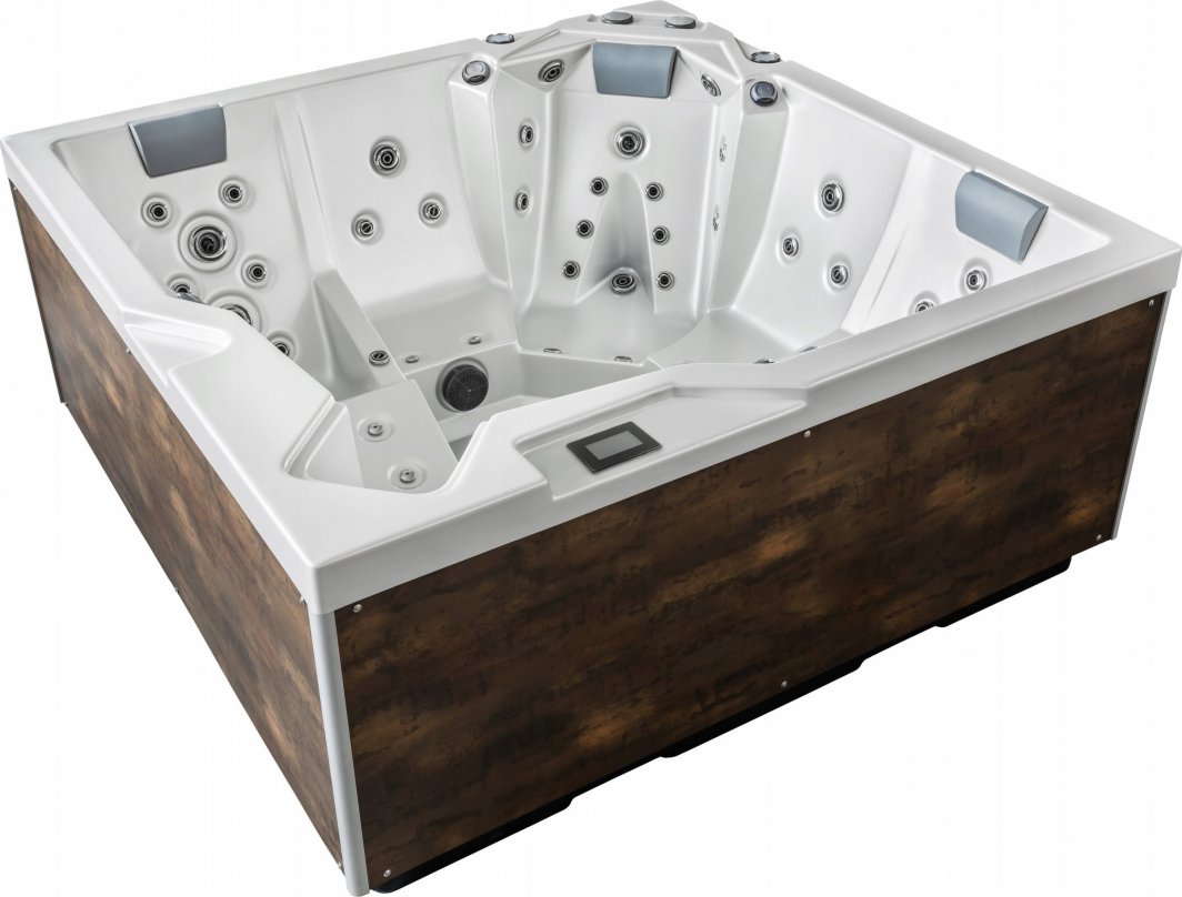 Сучасний дизайн Чисті лінії, сучасні форми.Дизайнерська гідромасажна ванна OKA, створена за проектом чеського архітектора Ондржея Каменіцького, привертає увагу безшовними шафами, що нагадують кілька видів справжнього дерева.Але не тільки ваші очі будуть задоволені.Ергономічне та стратегічне розташування повітряних струменів завжди забезпечує дуже ефективний масаж тіла та дозволяє вам насолоджуватися безтурботним розслабленням.Гідромасажна ванна досить простора навіть для високих людей.Чудовий масаж для Вашого тіла Модель ОКА 5-місна – має дві місткі кушетки та 3 комфортних сидіння. Чудовий масаж забезпечують 65 струменів, з яких 55 водяних і 10 повітряних.У розпорядженні користувача: два потужних насоса Koller потужністю 3HP кожен;енергозберігаючий циркуляційний насос Koller потужністю 200 Вт в поєднанні з титановим нагрівачем потужністю 3 кВт;Сенсорне управління American Balboa SpaTouch;красиве підводне світлодіодне освітлення;водоспад;bluetooth з колонками і сабвуфером;ефективний озонатор з УФ лампою.У комплект входить термочохол і сходинки.