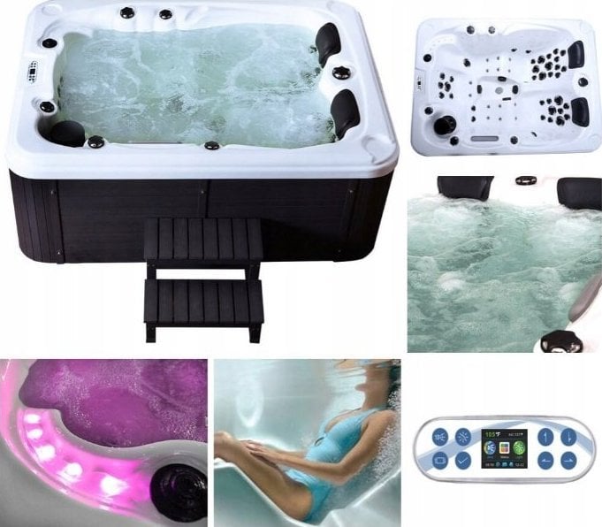 Чудовий масаж для вашого тіла. Наші інженери розробили дуже ергономічну форму внутрішньої частини ванни, що робить положення лежачи дуже зручним.Пристрій дуже простий у використанні, просто підключіть його до розетки 230В.Найпотужніший прилад на 3 особи в класі ванн, що підключаються до мережі 230В.Дуже простий у використанні та надійний контролер.Ергономічне та стратегічне розташування повітряних струменів завжди забезпечує дуже ефективний масаж тіла та дозволяє вам насолоджуватися безтурботним розслабленням.Гідромасажна ванна досить простора навіть для високих людей.Найякісніша 3-х місна модель IND-230 – має дві місткі кушетки.Чудовий масаж забезпечують 53 струменя води – всі масажні струменя регулюються по інтенсивності масажу.У розпорядженні користувача: двошвидкісний водяний насос потужністю 2200 Вт;режим циркуляції 750Вт;обігрівач 3000 Вт;насичене підводне освітлення зі зміною кольору;освітлений водоспад;фонтан з підсвічуванням;plug and play – просто підключіть його до розетки 230 В і ввімкніть.Ванна, що входить в комплект, має товстий термочохол і сходинки.