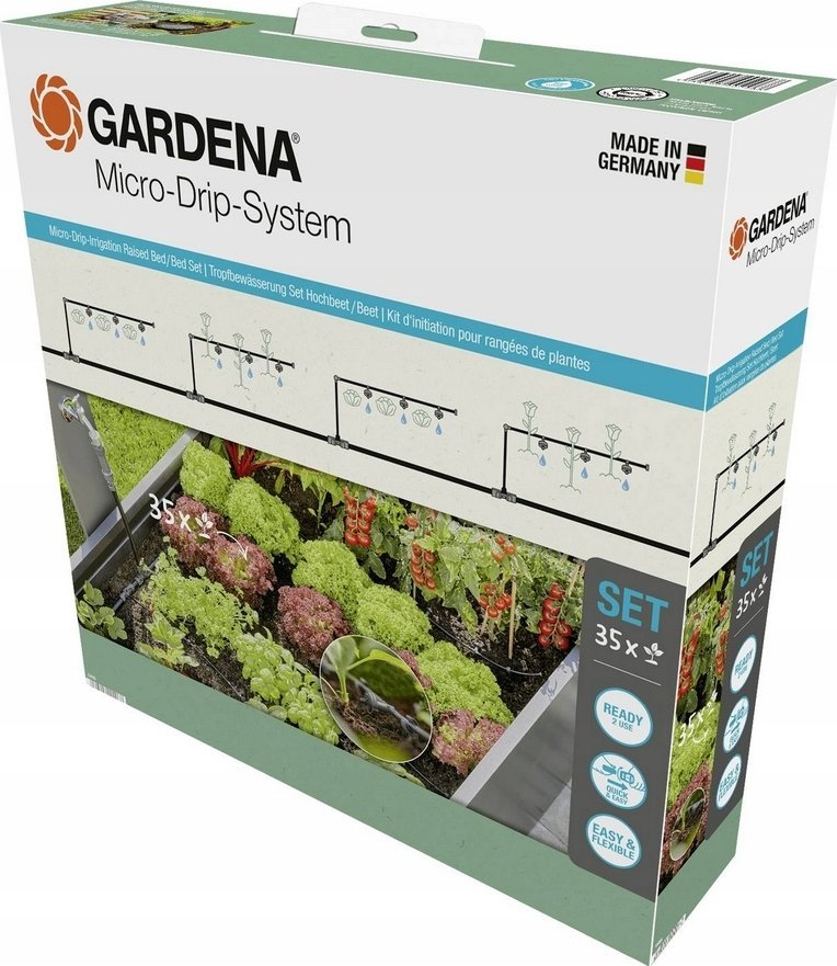 Гардена Мікрокрапельна система крапельного поливу GARDENA Набір грядок/грядок, 35 рослин, крапельниця (чорний/сірий, модель 2023)