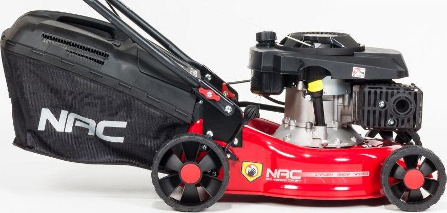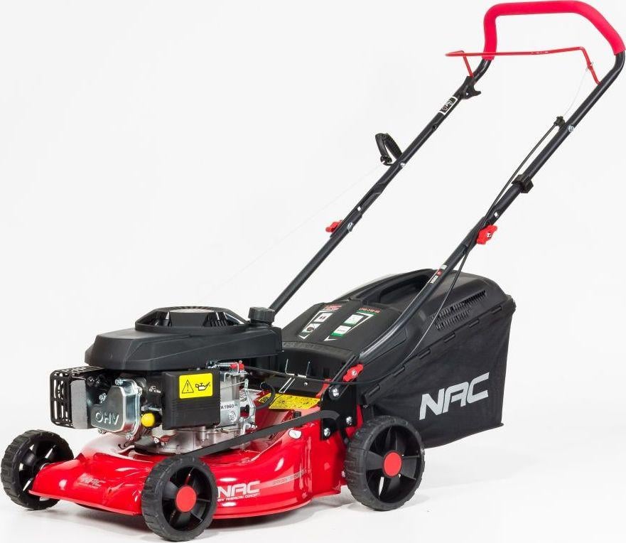Газонокосарка бензинова NAC LP42-146-NG без приводу Газонокосарка бензинова NAC LP42-146-NG оснащена сучасним верхньоклапанним двигуном об’ємом 146 см 3 з максимальним крутним моментом 7 Нм з чавунною гільзою циліндра, що характеризується безвідмовною роботою та економією палива.Сталевий корпус забезпечує довговічність і стійкість до пошкоджень.Невеликий розмір і вага роблять газонокосарку дуже маневреною та легкою для транспортування та зберігання.Ергономічні рукоятки полегшують керування косаркою, а їх м’яке покриття забезпечує комфорт під час роботи.Сітчастий кошик об’ємом 40 літрів із пластиковою пилозахисною кришкою та індикатором заповненості дозволяє довше косити без необхідності спорожнення.Зручна ручка робить спорожнення кошика без проблем.Система промивання корпусу дозволяє легко і швидко помити внутрішню частину корпусу косарки.Просто підключіть садовий шланг до патрубка на корпусі косарки.Зручна центральна ручка регулювання дозволяє легко встановити потрібну висоту зрізу.Технічні параметри: Двигун: NAC, чотиритактний, одноциліндровий, OHV, Об’єм двигуна: 146 см 3 Максимальний крутний момент: 7 Нм Номінальна потужність машини: 2,6 кВт Частота обертання: 3000 об. 25-70 мм Ємність кошика: 40 літрів Тип кошика: сітка з пластиковою кришкою Діаметр переднього/заднього колеса: 15,5 см / 17,5 см Функції: кошик для зливу, задній злив Ємність піддону для масла: 0,5 літра Ємність паливного баку: 0,8 літра м’яке покриття корпусу верхньої ручки Корпус мийної системи: сталь Вага: 25,2 кг У комплект входить: косарка бензиновий двигун, оригінальний ніж, травозбірник, аксесуари для монтажу та експлуатації косарки, оригінальний гарантійний талон, інструкція з експлуатації польською мовою. Перед запуском косарки залийте моторне масло та паливо.Першу заміну масла слід проводити через 5 годин роботи, а кожну наступну – через 20-25 годин роботи.