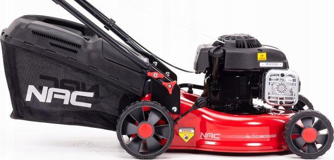 Бензинова газонокосарка серії NAC B&S 300 125 куб. регулювання: центральне, п’ятиступеневе регулювання висоти зрізу: 25 – 70 мм Об’єм кошика: 40 літрів Тип кошика: сітка з пластиковою антипилозахисною кришкою Діаметр переднього/заднього колеса: 15 см / 17 см Функції: кошик для викиду, задній розвантажувач Ємність масляного бака: 0,47 літра Ємність паливного баку: 0,8 літра М’яке покриття корпусу верхньої ручки Корпус мийної системи: Вага сталі: 21,5 кг