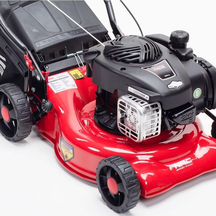 Бензинова газонокосарка NAC LP42-450E Бензинова газонокосарка NAC LP42-450E оснащена сучасним верхньоклапанним двигуном Briggs & Stratton з максимальним крутним моментом 6,1 Нм, що характеризується безвідмовною роботою, економією палива та низьким рівнем викидів вихлопних газів.Колеса з шарикопідшипниками зменшують опір коченню та полегшують керування косаркою.Сталевий корпус забезпечує довговічність і стійкість до пошкоджень.Зручна центральна ручка регулювання зрізу дозволяє легко встановити потрібну висоту зрізу в п’ятиступінчастому діапазоні від 25 мм до 70 мм.Ергономічні регульовані рукоятки спрощують керування газонокосаркою, а їх м’яке покриття забезпечує комфорт під час роботи.Система мийки корпусу дозволяє легко і швидко помити корпус косарки.Підключивши садовий шланг з водою, ви можете легко очистити внутрішню частину корпусу косарки.Косарка дозволяє косити із заднім викидом і збиранням у кошик.Технічні параметри: Двигун: Briggs & Stratton, чотиритактний, одноциліндровий, OHV, 125 см 3 максимальний крутний момент: 6,1 Нм швидкість обертання: 2800 об/хв Тип палива: 95 Pb неетилований бензин Ширина зрізу: 42 см Регулювання висоти зрізу: центральне, п’ятиступінчасте Діапазон регулювання висоти зрізу: 25 – 70 мм Об’єм кошика: 40-літровий тип кошика: сітка з пластиковою протипиловою кришкою, діаметр передніх/задніх коліс: 15 см/17 см, колеса з підшипниками Функції: зливний кошик, заднє зливне масло Ємність масляного баку: 0,47 літра Ємність паливного баку: 0,8 літра м’яка обробка корпусу верхньої рукоятки корпус системи миття: вага сталі: 21 кг Перед запуском косарки залийте моторне масло та пальне.Першу заміну масла слід проводити через 5 годин роботи, а кожну наступну – через 20-25 годин роботи.