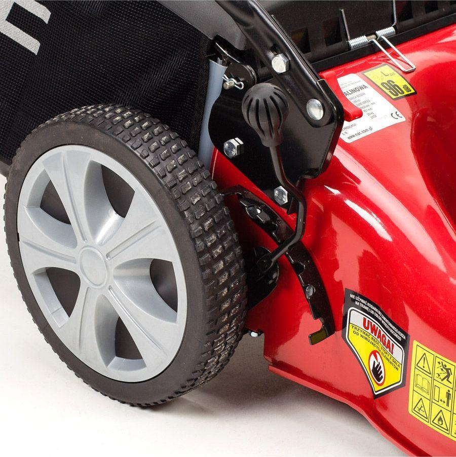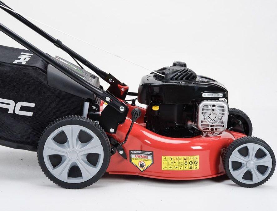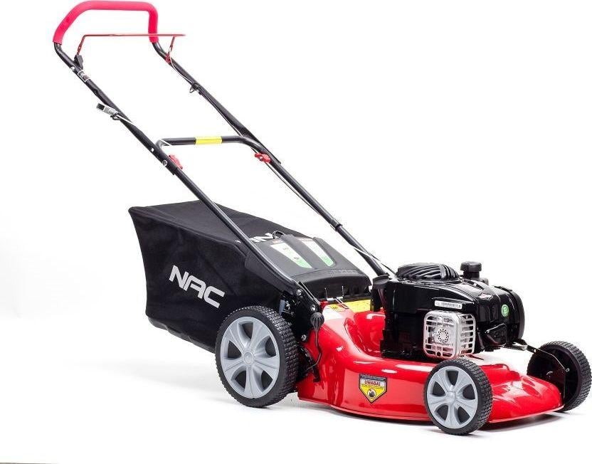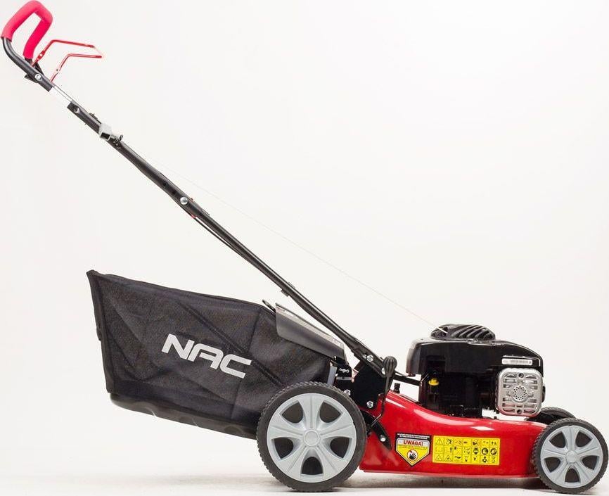 Бензинова косарка NAC LP46-500E-H без приводу Газонокосарка NACLP46-500E-H без приводу оснащена сучасним верхньоклапанним двигуном Briggs & Stratton з максимальним крутним моментом 6,8 Нм, що характеризується безвідмовною роботою та економією палива.Великі колеса з шарикопідшипниками зменшують опір коченню та полегшують керування косаркою.Сталевий корпус забезпечує довговічність і стійкість до пошкоджень.Зручна центральна ручка регулювання зрізу дозволяє легко встановити потрібну висоту зрізу.Ергономічні рукоятки полегшують керування косаркою, а їх м’яке покриття забезпечує комфорт під час роботи.Система мийки корпусу дозволяє легко і швидко помити корпус косарки.Косарка має функцію подрібнення, завдяки якій скошена трава направляється в зону дії ножа.Таким чином, після багаторазового подрібнення, дуже дрібні травинки рівномірно розкидаються по поверхні газону, де вони розкладаються і повертаються в обіг як добриво.Технічні параметри: Двигун: Briggs&Stratton 500E SERIES, чотиритактний, одноциліндровий, 140 см 3 максимальний крутний момент: 6,8 Нм швидкість обертання: 2800 об/хв Тип палива: неетилований бензин Pb95 Ширина зрізу: 46 см Регулювання висоти зрізу: центральне, семиступінчасте Діапазон регулювання висоти зрізу: 25 – 75 мм місткість кошика: 60 літрів тип кошика: діаметр сітки передніх / задніх коліс: 17,5 см / 25 см функції: вивантаження кошика, заднє вивантаження, корпус підшипників шліфувального круга: сталь вага: 30 кг