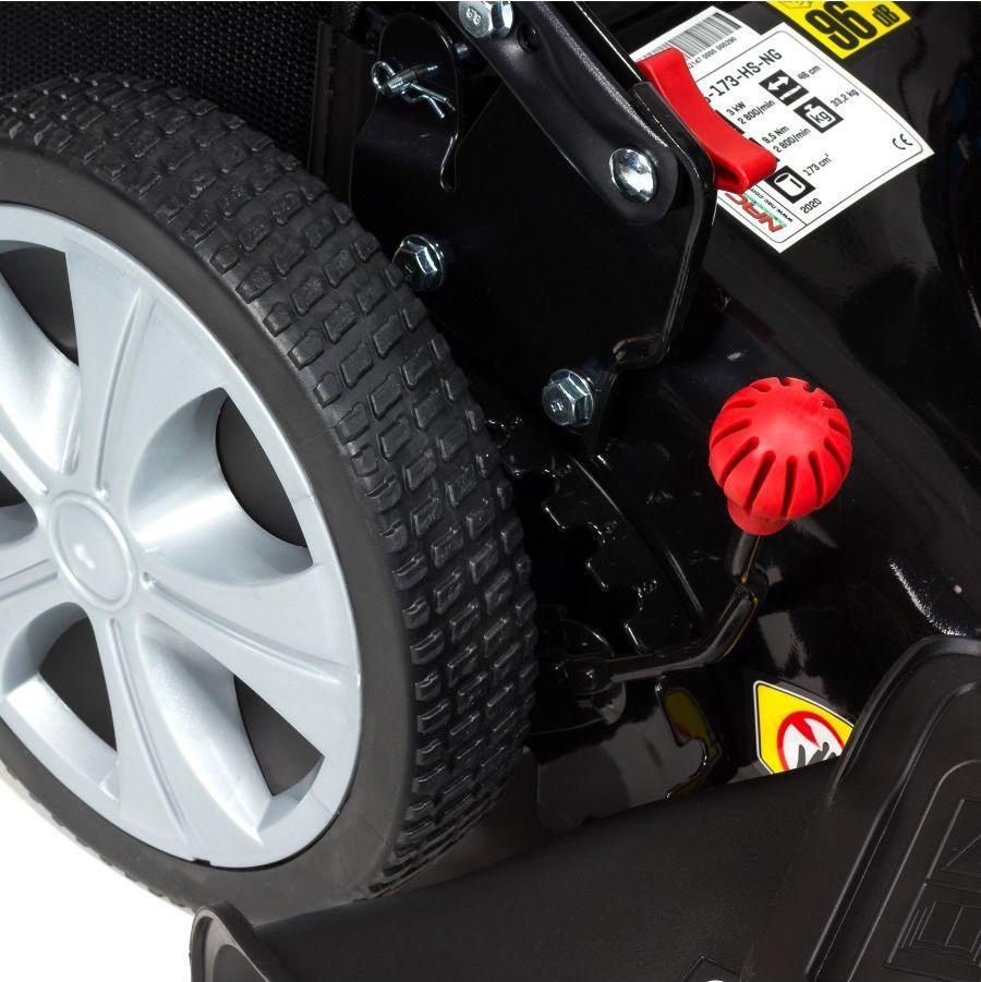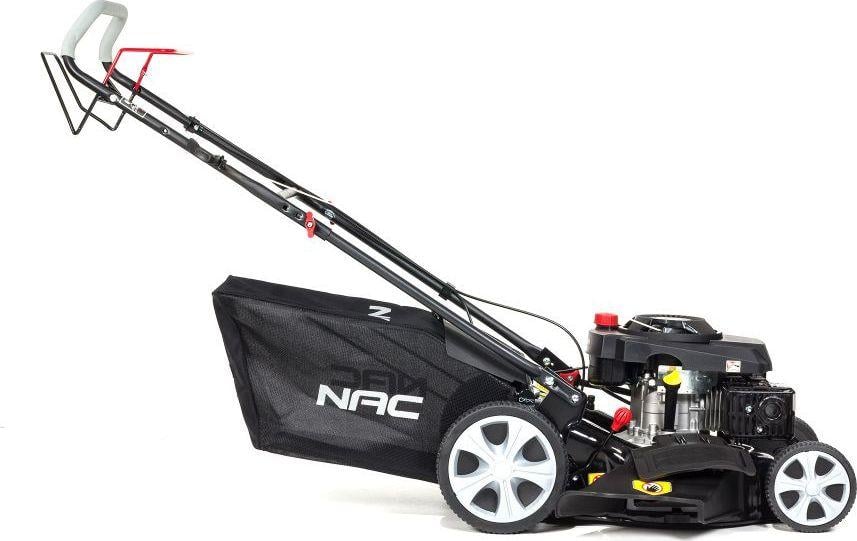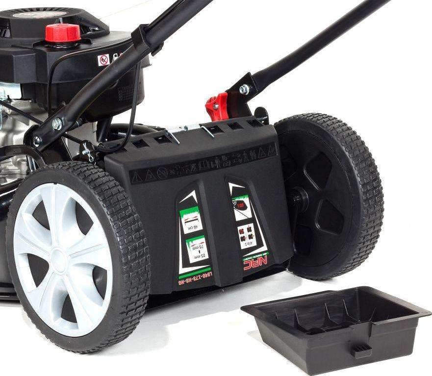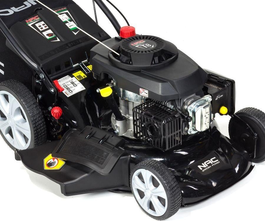 Бензинова газонокосарка NAC LS46-173-HS-NG Бензинова газонокосарка NAC LS46-173-HS-NG оснащена сучасним верхньоклапанним двигуном об’ємом 173 см 3 з максимальним крутним моментом 9,5 Нм з чавунною гільзою циліндра, що характеризується безвідмовною роботою та економією палива.Ширина зрізу становить 46 см, що ідеально підходить для середніх і великих садів.Великі задні колеса з шарикопідшипниками діаметром 25 см зменшують опір коченню та полегшують керування газонокосаркою.Діаметр переднього колеса 18см.Зручна ручка центрального регулювання висоти зрізу дозволяє легко встановити потрібну висоту зрізу в семиступінчастому діапазоні від 25 мм до 75 мм. Сталевий корпус забезпечує довговічність і стійкість до пошкоджень.Кошик об’ємом 60 літрів ідеально підходить до розміру косарки.Навіть коли вона заповнена, косарка не втрачає потужності і легко керувати.Ергономічні рукоятки полегшують керування косаркою, а їх м’яке покриття забезпечує комфорт під час косіння.Косарка оснащена системою миття корпусу, яка дозволяє легко та швидко промити внутрішній корпус косарки – просто підключіть садовий шланг з водою до швидкого роз’єму на корпусі та запустіть косарку.Косарка має функцію подрібнення, завдяки якій скошена трава направляється в зону дії ножа.Таким чином, після багаторазового подрібнення, дуже дрібні травинки рівномірно розкидаються по поверхні газону, де вони розкладаються і повертаються в обіг як добриво.Косарка має 5 функцій, які полегшують косіння газону: привід – полегшує керування газонокосаркою, вам не потрібно застосовувати силу, щоб штовхати задній викид – скошена трава викидається під ноги, косить без використання кошика, викид – скошена трава викидається в кошик, вам не потрібно згрібати її бічний викид – скошена трава відкидається вбік через спеціальний бічний жолоб подрібнення (мульчування) – скошена трава залишається на газоні, подрібнюється і може використовуватися як природне добриво.Немає потреби розгрібати.Технічні параметри: Двигун: NAC T8, OHV, чотиритактний, верхній клапан Об’єм двигуна: 173 см 3 Максимальний крутний момент: 9,5 Нм при 2800 об/хв Номінальна потужність машини: 3 кВт при 2800 об/хв Тип палива: неетилований бензин 95 Pb Об’єм паливного баку: 0,8 літра Об’єм масляного бака: 0,6 літра Ширина висоти зрізу: Регулювання висоти зрізу 46 см: центральне, семиступінчасте Діапазон регулювання висоти зрізу: 25 – 75 мм Місткість кошика: 60 літрів Тип кошика: діаметр сітки передніх коліс: 18 см діаметр задніх коліс: 25 см колеса на шарикопідшипниках Функції: привід, викид у кошик, задній викид, бічний викид, подрібнення (мульчування) м’яка ручка ручний старт вага: 33,2 кг У комплекті: бензинова косарка, оригінальний ніж, травозбірник, мульчувальна насадка, аксесуари для складання та експлуатації косарки, оригінальний гарантійний талон, інструкція користувача польською мовою. Перед запуском косарки залийте моторне масло та паливо.Першу заміну масла слід проводити через 5 годин роботи, а кожну наступну – через 20-25 годин роботи.
