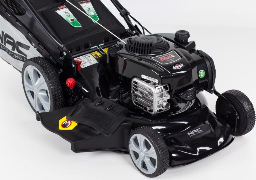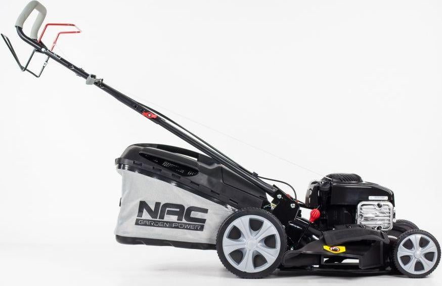 Бензинова газонокосарка NAC LS46-625E-HS 150cc Бензинова газонокосарка NAC LS46-625E-HS оснащена сучасним чотиритактним верхньоклапанним двигуном Briggs & Stratton 625E OVH SERIES об’ємом 150 см3 і максимальним крутним моментом 8,5 Нм, що характеризується безвідмовною роботою та економією палива. і низькі викиди вихлопних газів.Сталевий корпус косарки забезпечує довговічність і стійкість до пошкоджень.Зручна центральна ручка регулювання висоти зрізу дозволяє легко встановити потрібну висоту в семиступінчастому діапазоні від 25 мм до 75 мм.60-літровий кошик із пластиковою пилозахисною кришкою дозволяє довше косити без необхідності спорожняти його, а ширина 46 см забезпечує більш ефективне косіння. Зручна ручка спрощує спорожнення кошика.Великі колеса з кульковими підшипниками зменшують опір коченню, полегшуючи керування та маневрування косаркою.Ергономічні регульовані рукоятки спрощують керування газонокосаркою, а їх м’яке покриття забезпечує комфорт під час роботи.Система миття корпусу дозволяє легко і швидко помити корпус косарки – просто підключіть садовий шланг з водою до патрубка на корпусі косарки і запустіть двигун.Косарка має функцію подрібнення, завдяки якій скошена трава направляється в зону дії ножа.Таким чином, після багаторазового подрібнення, дуже дрібні травинки рівномірно розкидаються по поверхні газону, де вони розкладаються і повертаються в обіг як добриво.Косарка дозволяє косити з функціями заднього і бічного викиду, збирання в кошик і подрібнення.