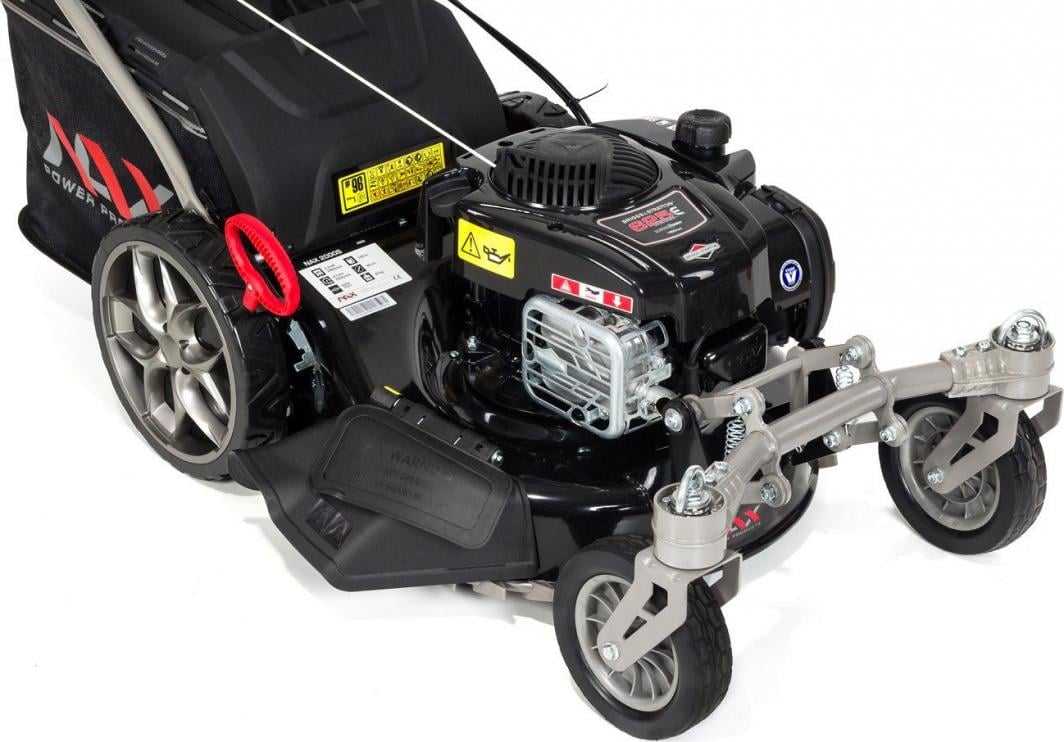 Genialna maszyna dla Twojego ogrodu Kosiarka spalinowa z napędem NAX 2000S to urządzenie niezwykle zaawansowane technologicznie, które każdy entuzjasta pracy w ogrodzie pokocha od pierwszego wejrzenia. Praca w ogrodzie powinna być przyjemnością. Jeśli on sam stanowi dla Państwa oazę spokoju, miejsce wypoczynku, jest źródłem kontaktu z naturą, nie powinien kojarzyć się z ciężką, obciążająca zdrowie i pochłaniającą zbyt dużo czasu pracą. Rozumiejąc to doskonale, oferujemy Państwu maszynę, która pracę zamieni w przyjemność i gwarantuje jej doskonały efekt. W standardowym wyposażeniu kosiarki znajdują się: oryginalny karton, komplet śrub montażowych, komplet nakrętek montażowych, komplet podkładek montażowych, komplet motylków do rączek, olej silnikowy 0,6 l marki Briggs&Stratton, dwa koła skrętne, nóż tnąco – mielący, zaślepka do funkcji mielenia, pokrywa do funkcji wyrzutu bocznego, kosz na trawę, zestaw narzędzi montażowych, instrukcja obsługi w języku polskim. Przekonująca jakość Dzięki innowacyjnej technologii Ready Start , wysokowydajny, niezawodny silnik BRIGGS & STRATTON cechujący się dużą mocą znamionową 2,3 kW można uruchomić szybko i łatwo. Dodatkowo, dzięki technologii OHV z zaworami znajdującymi się u góry, oferuje on niesamowitą sprawność, co widać w większej mocy oraz niższym spalaniu i zużywaniu się. Elektroniczny układ zapłonowy Magnetron zapewnia bezobsługowe i niezawodne uruchamianie silnika. Dodatkowo smarowanie rozbryzgowe gwarantuje długie i bezawaryjne działanie skrzyni korbowej, a cichą pracę urządzenia zapewnianowoczesny tłumik wyposażony w technologię Lo-Tone . Chcesz zastosować mulczowanie lub wyrzut boczny? Kosiarkę tę można błyskawicznie przebudować bez użycia narzędzi przez zamontowanie zaślepki do mulczowania lub wyrzutu bocznego . Dzięki dostarczonemu klinowi do mulczowania i wyrzutowi bocznemu, kosiarka oprócz koszenia i zbierania trawy do kosza, oferuje dwie dodatkowe, niezwykle przydatne funkcje. Praktyczna alternatywa do łąk i sadów. Możliwość wygodnego stosowania bez użycia narzędzi. Użytkownik ma pełną kontrolę nad koszeniem, dostosowując jego parametry do własnych upodobań. Najnowsze technologie zapewniają wysoki komfort pracy połączony z niezwykle prostą eksploatacją. Komfortowa regulacja wysokości Dzięki centralnej regulacji wysokości , jednym ruchem można wygodnie zmienić wysokość koszenia – centralnie i płynnie dzięki mechanizmowi sprężynowemu. Podwójne łożysko kulkowe i skrętne koła przednie Duże koła chronią trawę i zapewniają lepszą trakcję podczas prowadzeni kosiarki, a podwójne łożysko kulkowe gwarantuje łatwe poruszanie się po trawie lub nierównym terenie. W porównaniu z tradycyjną kosiarką, posiadającą standardowy sposób mocowania kół, oferowany model wyposażony w dwa skrętne koła przednie cechuje znacznie lepsza zwrotność, przy zachowaniu doskonałej trakcji. Dzięki takiemu rozwiązaniu kosiarka znakomicie sprawdzi się podczas pracy na krętym terenie między krzewami czy rabatami – możliwość obrotu 360 stopni w miejscu. Napęd kół zapewnia optymalną wygodę podczas prowadzenia kosiarki. Trwały i pojemny kosz na trawę ze wskaźnikiem napełnienia Duży, aerodynamicznie ukształtowany kosz siatkowy z plastikową pokrywą cechujący się pojemnością 60 l przekonuje nie tylko swoim rozmiarem. Aerodynamiczne prowadzenie powietrza umożliwia optymalne wypełnienie przestrzeni kosza, a duży otwór i praktyczny uchwyt transportowy dają możliwość łatwego i całkowitego opróżniania. Praktyczny wskaźnik poziomu napełnienia kosza wskazuje, kiedy należy go opróżnić, aby nie nastąpiło zablokowanie kanału wlotowego. Koszenie, które nie męczy Praca bez wysiłku oraz łatwa obsługa dzięki ergonomicznie wyprofilowanemu uchwytowi. Rękojeść z miękkim uchwytem , za pomocą kilkustopniowej regulacji, można dopasować do wzrostu każdego użytkownika, przez co koszenie jest niezwykle wygodne. Oferowany model został wyposażony w dodatkowy, funkcjonalny panel na napój czy klucze . Jeszcze mniej męczące będzie koszenie trawy z użyciem napędu kół. Przygotowana na wszystkie przeciwności System mycia obudowy pozwala w prosty i szybki sposób umyć wewnętrzną stronę korpusu kosiarki – wystarczy podłączyć wąż ogrodowy z wodą do szybkozłączki na obudowie kosiarki i uruchomić silnik. Urządzenie czyści się podczas obrotów noża, na który wpada silny strumień wody. Specyfikacja Typ silnika spalinowy, czterosuwowy, górnozaworowy Producent silnika Briggs & Stratton Model silnika 625E SERIES Ready Start Pojemność silnika 150 cm3 Znamionowa moc silnika 2,3 kW Rozrusznik ręczny Szerokość koszenia 46 cm Sposób napędu napęd własny na tylne koła Funkcje wyrzut tylny, wyrzut do kosza, wyrzut boczny, mielenie (4w1) Regulacja wysokości koszenia 6-stopniowa Sposób regulacji wysokości osiowy Minimalna wysokość koszenia 25 mm Maksymalna wysokość koszenia 75 mm Obudowa stalowa Pojemność kosza na trawę 60 l Rodzaj kosza na trawę siatkowy z plastikową pokrywą Średnica kół przednich / tylnych 180 mm / 280 mm Łożyskowane koła tak Panel na napój i klucze tak Funkcja mycia obudowy tak Wskaźnik napełnienia kosza tak Waga 34 kg
