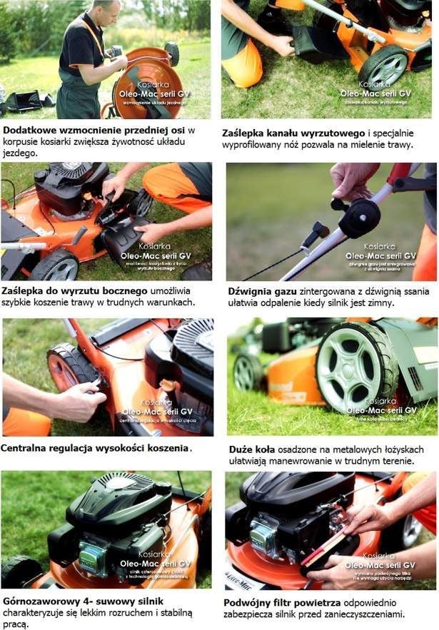 Бензинова газонокосарка OLEO-MAC GV 44 TK. Косарка для приватних користувачів, які працюють на газонах площею понад 600 м2, проста у використанні та маневреності.Оснащений колесами на підшипниках, які забезпечують плавний хід пристрою.Постійні обороти двигуна.Їхати зі швидкістю до 3,6 км/год.Регулювання висоти зрізу є незалежним і регулюється на кожному колесі в 4 положеннях.Кошик для трави об’ємом 60 л. Технічні дані Корпус: сталь Об’єм двигуна: 123 см³ Марка/модель двигуна: EMAK K 450 OHV – Автоматичний дросель Корисна потужність косарки: 1,8 кВт при 2900 об. l Вага: 24,5 кг