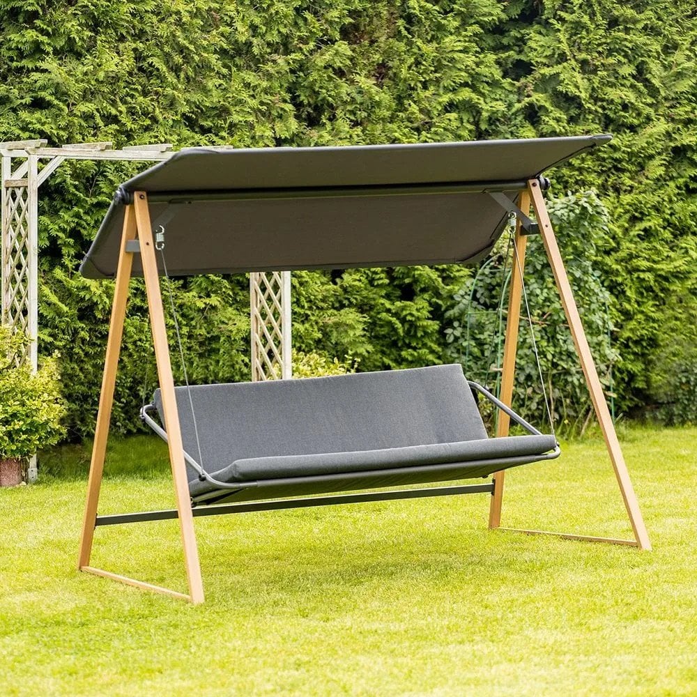 Садова гойдалка HERNING – ідеальне місце для відпочинку в саду. Садова гойдалка HERNING – це окремо стоїть конструкція, яка пропонує зручне місце для відпочинку на свіжому повітрі.Ідеально підходить для трьох осіб, він чудово працюватиме як у саду, так і на терасі, забезпечуючи простір для відпочинку та проведення часу з близькими.Зручні гойдалки для трьох осіб Подаруйте комфорт собі та своїм близьким завдяки місткому сидінню гойдалки, яке вміщує до трьох осіб.Контурне сидіння і м’яка товста подушка гарантують високий комфорт використання, що перетворює кожну мить, проведену на гойдалці, в справжнє задоволення.Висока якість і сучасний дизайн. Гойдалки мають сучасний вигляд, який ідеально впишеться в будь-який сад.Міцна сталева конструкція з порошковим покриттям не тільки привертає увагу, але й забезпечує стабільність і безпеку використання.Функціональність і зручність використання. Гойдалки HERNING розроблені з думкою про комфорт.Пришиті до сидіння зав’язки запобігають рух подушки, що підвищує комфорт використання.Завдяки цьому ви зможете сповна насолодитися хвилинами відпочинку.Міцна конструкція та легкість в обслуговуванні. Виготовлені з пластику та поліестеру, гойдалки не тільки міцні, але й прості в обслуговуванні.Чохол сидіння із застібкою-блискавкою забезпечує швидке та легке очищення, що важливо для тривалого збереження ідеального стану.Регульований капюшон для оптимального захисту від сонця. Гойдалки оснащені регульованим навісом, який регулюється під кутом сонячного світла.Завдяки цьому ви отримуєте захист від сонця і дощу, що дозволяє використовувати гойдалки в різних погодних умовах.Технічні характеристики садової гойдалки HERNING Виробник: Mirpol Код виробника: HERNING SWING Тип: окремо стоячий Матеріал: пластик, поліестер Колір: сірий (графіт) Ширина сидіння: 135 см Довжина сидіння: 224 см Стиль: традиційний Максимальне навантаження: 250 кг Система сидіння: Оксфорд Каркас: порошкове покриття Висота: 173 см Ширина: 224 см Глибина: 135 см Кількість осіб: 3 Тканина балдахіна: поліестер Матеріал сидіння: прядильний поліестер Розміри упаковки: 220 x 56 x 20 см Замовляйте зараз, щоб насолодитися найкращими моментами відпочинку на природі!