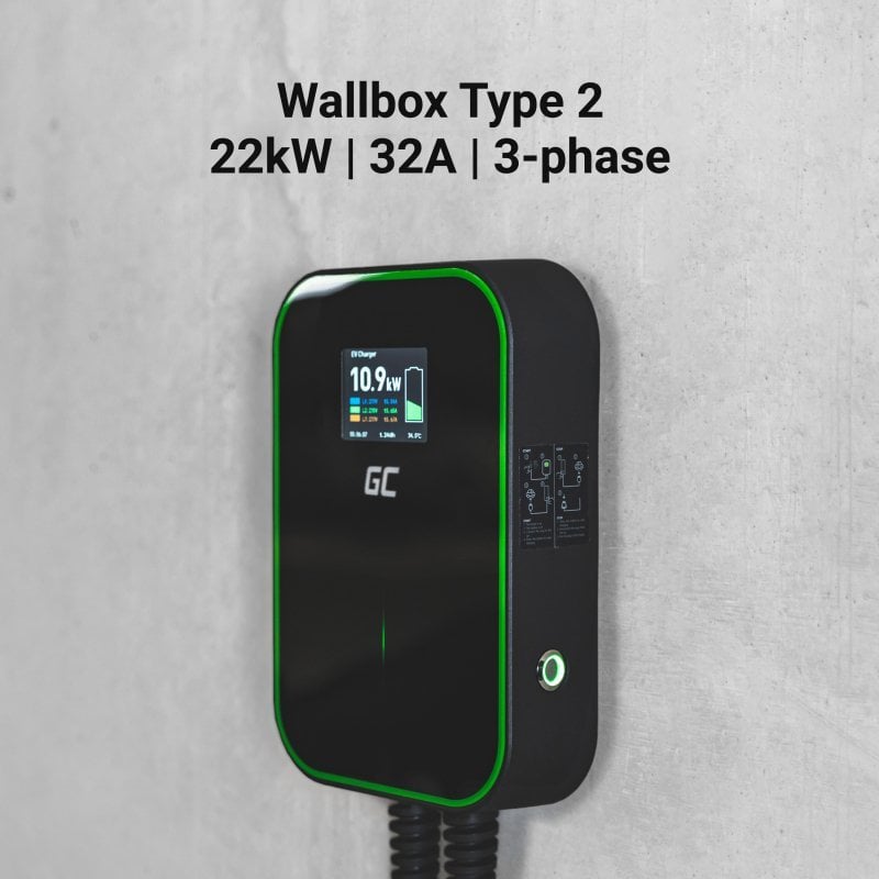 Green Cell Wallbox EV14 PowerBox 22кВт Тип 2 зарядний пристрій 6м