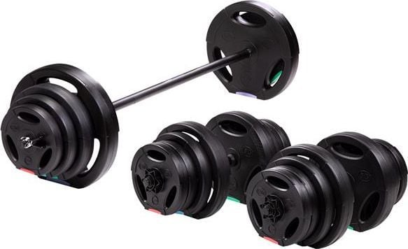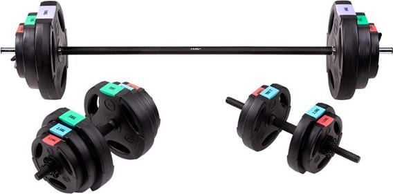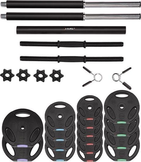 Штанги і гантелі зі змінними вантажами – це класика, яка обов’язково повинна бути в кожному домашньому спортзалі.Бренд HMS пропонує ідеальне рішення, пропонуючи SGSP60, набір з двох композитних гантелей і штанги з навантаженням.Цементне наповнення і якісний пластик на зовнішньому шарі гарантують високу міцність виробу.Затискачі типу «метелик», а у випадку з гантелями – зірчасті затискачі та ідеально підібраний діаметр отвору пластини сприяють швидкій зміні навантаження та, в той же час, надійному та постійному положенню на перекладині.У набір входять: два маленьких і один великий брусок, два метелики і чотири зірчасті затискачі і всього 16 вагових пластин.Використовуючи такий набір, ми будемо виконувати тренування всього тіла.Продукт підходить як для досвідчених користувачів, так і для початківців.Почніть тренуватися сьогодні, SGSP60 HMS — ідеальне рішення для домашнього тренажерного залу.Специфікація: Матеріал: цемент, ПЕ Загальна вага набору: 62 кг У набір входять: 3 бруска (2 коротких, 1 довгий) 4 зірочки, 2 хомути-метелики Пластини: 6 х 1,25 кг 4 х 2,5 кг 4 х 5 кг 2 х 10 кг Діаметр бруска: 25,4 мм Довжина бруска: короткий 45 см, довгий 140 см;Коментарі: ;;Не призначений для комерційного використання Гарантія 24 місяці;