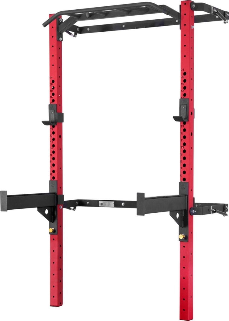 СКЛАДНА ТРЕНУВАЛЬНА КЛІТКА KLT23 HMS RED Складна тренувальна клітка KLT23 від HMS розроблена таким чином, щоб відповідати сучасним тенденціям ринку та виправдовувати очікування найвибагливіших клієнтів.Клітка в цьому варіанті продається з підтягувальною планкою, гачками для штанги та страховочними опорами.Завдяки KLT23 ви отримаєте нові можливості для навчання.Багатофункціональне тренування в невеликому просторі Тренувальна клітка KLT23 кріпиться до стіни, що забезпечує її стійкість і безпеку.Ви можете легко скласти його, коли він не використовується, тому він не займає багато місця.Це величезна перевага цього обладнання, оскільки його можуть використовувати люди з обмеженим простором для тренувань.У складеному найглибшому місці клітка займає лише 31 см від стіни!KLT23 від HMS – міцна конструкція, яка дозволяє виконувати широкий спектр вправ.Штанга для підтягувань і гачки для штанги Клітка має багатофункціональну штангу для підтягувань, яка завдяки різним варіантам хвата дозволяє розвивати м’язи спини, рук і грудей.Підтягування — одна з найкращих вправ для верхньої частини тіла, оскільки вони опрацьовують кілька груп м’язів і покращують рухливість суглобів.Щоб спростити цю вправу, просто використовуйте спеціальні стрічки для опору.KLT23 також включає два гачки для шиї, які можна встановити на будь-якій висоті.Захисні опори У KLT23 ви також знайдете спеціальні опори, які можна прикріпити до рами клітки, щоб забезпечити максимальну безпеку під час тренувань з великою вагою.Опори можна кріпити практично на будь-якій висоті і використовувати при виконанні таких вправ, як жим лежачи або присідання зі штангою, не боячись скинути вагу.З опорами KLT23 ви можете розширити межі своєї витривалості.Набір для кожного Тренувальна клітка KLT23 від HMS – це обладнання, яке задовольнить потреби любителів силових тренувань і фітнесу.Незалежно від того, початківець ви чи просунутий, ви знайдете все необхідне для ефективних і безпечних тренувань.KLT23 урізноманітнить ваш розпорядок тренувань і дозволить досягти ще кращих результатів.Також до комплекту можна замовити спеціальні настінні вішалки, до складу яких входить тримач штанги STR28 і підставка для важків STR29.Примітка: Висота клітки в складеному вигляді 276 см. Якщо ви бажаєте скористатися функцією складання, а ваша кімната занадто низька, за вашим бажанням ми безкоштовно вкоротимо її до потрібної довжини.Технічні дані: Загальна висота в складеному стані: 276 см Висота в розкладеному стані: 230 см Загальна ширина: 142 см Зовнішня ширина між рамами: 124 Внутрішня ширина між рамами: 109 см Відстань між рамою та стіною в розкладеному стані: 54 см Відстань між рамою та стіною в складеному стані: 10 см Основна рама: 75 x 75 x 3,5 мм Колір: чорно-червоний Мінімум площа, необхідна для складання клітини: 276 x 150 x 150 см Максимальне навантаження: 300 кг Матеріал: сталь (порошкове покриття) Встановлення вибраних аксесуарів на раму: 21-ступеневе регулювання висоти – кожні 5,5 см