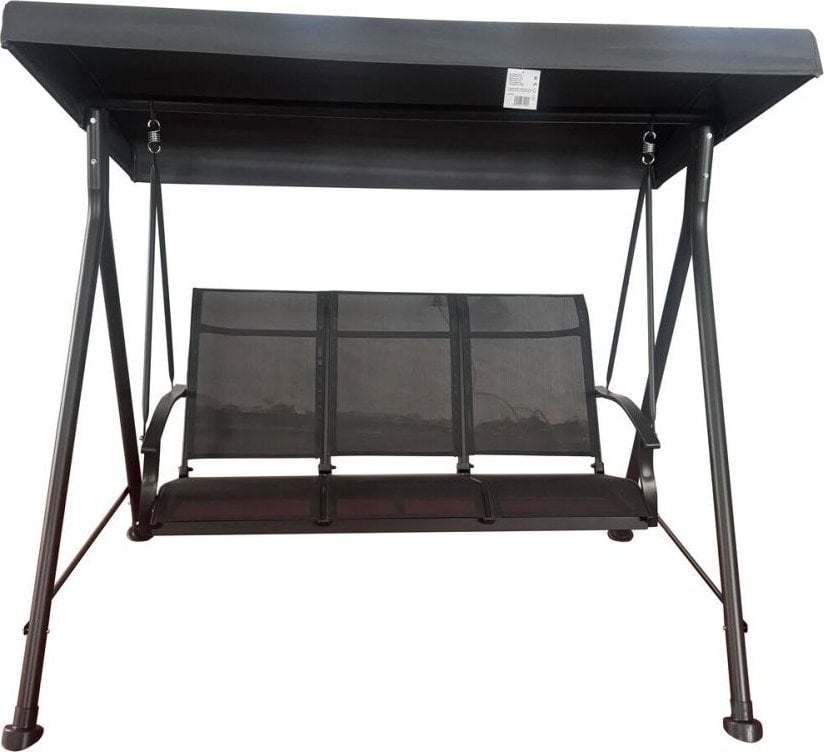 Ці садові гойдалки мають привабливий сучасний дизайн і ідеально підходять для вашого саду або тераси.Конструкція – метал, матеріал – поліестер, сидіння – текстиль. Перевагою є практичний похилий навіс, який служить тінню.Технічні дані: Висота виробу: 179 см. Довжина виробу: 196 см. Глибина виробу: 123 см. Висота спинки: 63 см. Глибина сидіння: 46 см. Ширина сидіння: 143 см. Висота сидіння від землі: 37 см. Загальна вага: 36 кг.Вантажопідйомність: 3 x 80 кг. Місткість: 3 особи. Матеріал конструкції: металевий дах і матеріал подушки: поліестер (навіс) + тканина (подушка сидіння) можна скласти в ліжко: без кольору: структура антрацит, подушка + сірий балдахін розмір упаковки: 193 x 69 x 23 см матеріал упаковки: картон Комплектація: 1x гойдалка