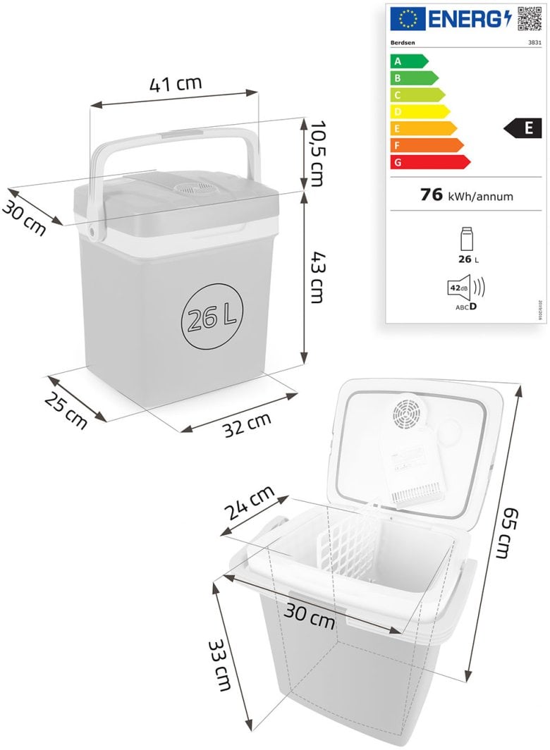 Легкий туристичний холодильник з функцією ECO Berdsen: 3831 ✅ Подвійні стінки корпусу забезпечують чудову теплоізоляцію та підтримують температуру в холодильній камері.✅ Об’єм 26 літрів.✅ Електронний дисплей.✅ Можливість налаштування температури.✅ Два режими роботи – ECO та Normal.✅ Функція охолодження – охолоджує напої до температури на 18°C ​​нижче температури навколишнього середовища.Сонце не дає – а можна!Холодні напої, свіжі фрукти та відпочинок без стресу – беріть із собою холодильник, куди захочете.2 блоки живлення в комплекті!✅ USB вхід, щоб можна було зарядити телефон!✅ Автомобільна розетка 12В – можна користуватися холодильником під час подорожі на автомобілі.✅ Розетка 230 В для зарядки холодильника вдома.Беріть його з собою куди завгодно!Функція кошика для пікніка – поставте продукти в холодильник і встановіть відповідну температуру на дисплеї.Функція ізольованої сумки – це ідеальний продукт для пляжу.Тепер ви можете забути щороку купувати новий ізоляційний мішок, просто візьміть із собою кулер.Продукти охолонуть, і ви зможете насолоджуватися ними довгі роки.Холодильник відмінно підійде як для короткої поїздки на море, так і для тривалої подорожі – його об’єм становить 26 літрів.Завдяки такій місткості ви зможете помістити все необхідне для себе та своїх близьких.ПЛАНУЄТЕ ДОВШИЙ ВІДПОЧИНОК?ХОЛОДИЛЬНИК BERDSEN БУДЕ ПРАЦЮВАТИ ІДЕАЛЬНО. Електроживлення та управління холодильником – просто і зручно.Холодильник живиться від розетки 220-240 В ~50/60 Гц або від розетки автомобільного прикурювача 12 В – відповідні шнури живлення входять в комплект.Після запуску двигуна холодильник увімкнеться автоматично, але вам може знадобитися натиснути кнопку ON/OFF, щоб перезапустити його.Режим Eco активується при досягненні заданої температури, зменшуючи споживання електроенергії.Коли температура підвищиться, пристрій автоматично повернеться в нормальний режим.Електронна панель керування Електронна панель дуже проста у використанні.Кнопка ON/OFF Кнопка режиму ECO Контроль температури – вище Контроль температури – нижче Індикаторні діоди Вбудований вентилятор буде обертати повітря всередині камери, завдяки чому продукти будуть рівномірно охолоджуватися.Якісні деталі – вишукані в кожній деталі!✅ Контейнер і кришка з ізоляцією.✅ Вбудований вентилятор буде обертати повітря всередині камери, завдяки чому продукти будуть рівномірно охолоджуватися.✅ Складна ручка – ручка.✅ Практичне відділення.✅Безпечне транспортування завдяки фіксатору кришки.Холодильник має практичну систему блокування – при вертикальному положенні ручки (у положенні для перенесення) кришка залишається закритою.Це дозволить уникнути його випадкового відкриття під час транспортування.✅ Додатковою перевагою холодильника є решітка, що розділяє його нутрощі.Холодильник має решітку з надзвичайно міцного та міцного ПВХ матеріалу.Завдяки сітці вам буде легше розподіляти продукти в холодильнику.✅ Зручне відкриття завдяки функції підтримки.Ручку холодильника можна використовувати як практичну опору – просто покладіть на неї кришку, щоб вона не закривалася автоматично під час пакування або виймання продуктів.ТЕХНІЧНІ ДАНІ: Ємність: 26 літрів Джерело живлення та потужність 220-240 В / 55-60 Вт / ECO 8,6 Вт / DC 12 В 5 A 43-45 Вт 2 кабелі живлення в комплекті: 240 В і 12 В, довжина ка