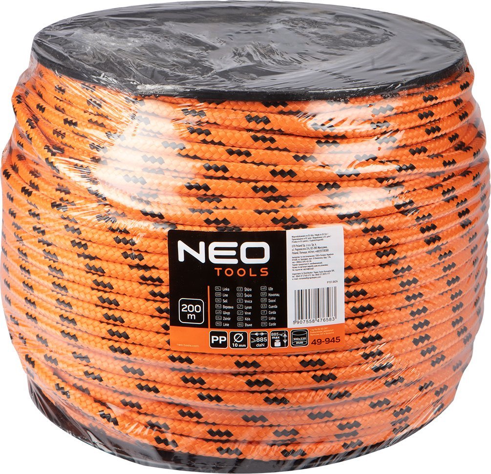 Поліпропіленова мотузка Neo Braided, діаметр 10, 200 м (49-945) Поліпропіленова мотузка NEO TOOLS діаметром 10 мм і довжиною 200 м є універсальним аксесуаром, ідеальним для різних застосувань.Виготовлений із міцного поліпропілену з серцевиною з поліестеру BCF/PES, він характеризується опліткою PPF і міцністю нитки 885 +/- 5% DAN (відповідно до PN-EN ISO 2307).Котушка, на яку намотується волосінь, має діаметр 300-220 мм і вагу 9,8 кг, що полегшує її перенесення та використання.Мотузка легка, але міцна, що робить її ідеальною для різноманітних ситуацій.Його можна використовувати для підв’язування рослин у садівництві та сільському господарстві, як пакувальну нитку в повсякденних побутових справах та в промисловості.Також корисний в будівельних роботах як допоміжний елемент.Його універсальність робить його незамінним у багатьох виробничих і логістичних процесах.Довжина 200 м забезпечує тривале використання без необхідності частого поповнення, що робить його практичним вибором як для професіоналів, так і для домашнього використання.Плетена поліпропіленова мотузка NEO TOOLS є незамінним аксесуаром у будь-якому середовищі – саду, квартирі чи фермі, пропонуючи довговічність і універсальність, необхідні в багатьох сферах застосування.Застосування Підв’язування рослин – ідеально підходить для використання в садівництві та сільському господарстві.Пакувальний канат – підходить для повсякденних побутових завдань і в промисловості.Будівельні роботи – корисні як допоміжний елемент у різних будівельних роботах.Промислове використання – необхідний у багатьох виробничих і логістичних процесах.Господарські роботи – універсальне застосування в різних господарських і садових роботах.Особливості продукту: плетена волосінь, міцність нитки: 885 +/- 5% (згідно PN-EN ISO 2307), вага котушки: 9,8 кг, легка, міцна.Матеріал: поліпропілен, сердечник з поліестеру BCF/PES, обплетення PPF, пластикова котушка.