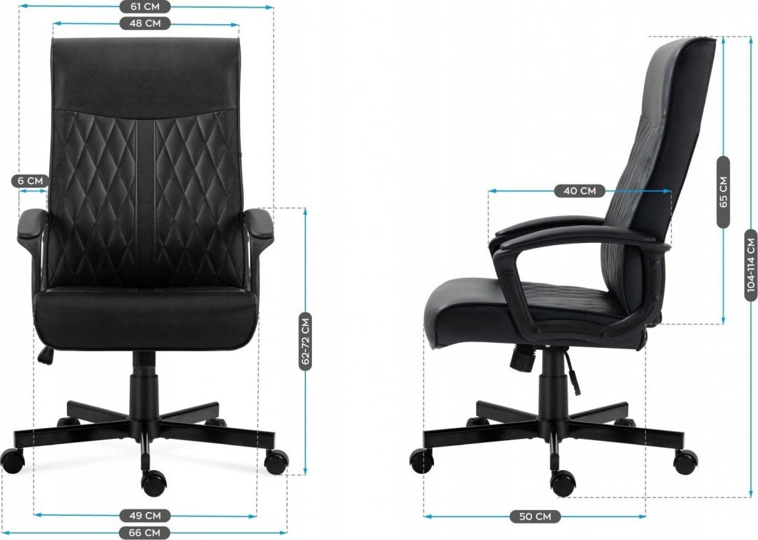 Особливості: Елегантне та ергономічне офісне крісло Контурний дизайн гарантує комфорт Виготовлено з високоякісних матеріалів Ідеальне крісло для офісу та роботи вдома для домашнього офісу Оздоблення шкірою HD PU Металевий каркас є міцною основою для всього крісла Стійкий до пошкоджень матеріал, простий у догляді Поліуретаново-гумові колеса захистять підлогу від подряпин Boss 3.2 Сучасний погляд на елегантність Mark Adler Boss 3.2 – це сучасне та зручне крісло, стиль якого відсилає до офісної елегантності прямо з хмарочосів Нью-Йорка.Бажаєте відчути себе генеральним директором компанії з Уолл-стріт?Змініть свій офіс та оберіть розкіш справжнього комфорту.Розроблено з увагою до найменших деталей, з використанням найкращих матеріалів.Все це для того, щоб ви відчули себе справжнім босом.ІДЕАЛЬНО ДЛЯ БУДЬ-ЯКОГО ПРОСТОРУ Непідвладна часу форма та елегантна чорна оббивка з сучасним стьобанням?З першого погляду Boss 3.2 вражає своїм універсальним стилем.Окрім ергономіки, офісне крісло має гарантувати ще й універсальність.Ідеально підходить для офісу, ідеально підходить для офісу та домашнього офісу.Профільна структура Спеціально профільована структура крісла забезпечує комфорт, чудовий зовнішній вигляд, здорову поставу, правильно вирівнює хребет і таким чином зменшує втому.Висота і форма спинки дозволяють зручно відкинутися, розслабити тіло і повністю зосередитися на поставлених завданнях..Елегантний підголівник Комфорт, який забезпечує Boss 3.2, дозволяє вільно відкидатися на спинку крісла.У цьому положенні голова підтримується м’яким підголівником, який не тільки виглядає красиво, але, перш за все, дозволяє вам по-справжньому розслабитися в кріслі та відпочити від напруженого графіка.Функція гойдання Механізм Tilt Plus дозволяє регулювати висоту сидіння, що дозволяє підлаштувати крісло під зріст користувача.Завдяки функції SoftFlex ви також можете гойдатися в кріслі, що дозволяє повністю розслабитися навіть під час роботи.1. Head and Neck Support для голови і шиї розвантажить м’язи шиї і дозволить розслабитися під час тривалої роботи за комп’ютером.2. Спина Спеціально профільована спинка забезпечить правильну позицію спини та запобіжить біль під час тривалого використання комп’ютера.3. Поперековий відділ хребта Вигнута форма спинки на висоті поперекового відділу хребта обіймає сидячу людину і додатково підтримує комфортне положення.4. Відповідне положення для сидіння Конструкція гарантує, що положення в кріслі завжди буде ергономічним.М’яке сидіння, обшите шкірою, забезпечує комфорт навіть після тривалого використання.Міцна основа. Високоякісна, п’ятизіркова, посилена сталева основа створює надзвичайний візуальний ефект і забезпечує довговічність і адекватну підтримку навіть при максимальному навантаженні.Безпечні для підлоги колеса П’ять подвійних поліуретаново-гумових коліс забезпечують вільне переміщення на кріслі, а використовувані матеріали захищають підлогу від подряпин і потертостей.Специфікація Бренд: Mark Adler Модель: Boss 3.2 Black Сертифікати: SGS Матеріали: PU шкіра HD Підголівник: ергономічна Конструкція: Timber FX Механізм: Tilt PLUS Колеса: Поліуретан-гума Максимальна вага користувача: 130 кг