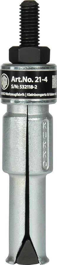 Конструкція внутрішнього екстрактора: з розділеними затискними губками та клиновим гвинтом.Застосування: для виймання шарикопідшипників, зовнішніх кілець і втулок підшипників.Також для підшипників, розташованих дуже близько до задньої стінки, які можна легко схопити та витягнути.Для використання з опорою внутрішнього знімача моделі 21.